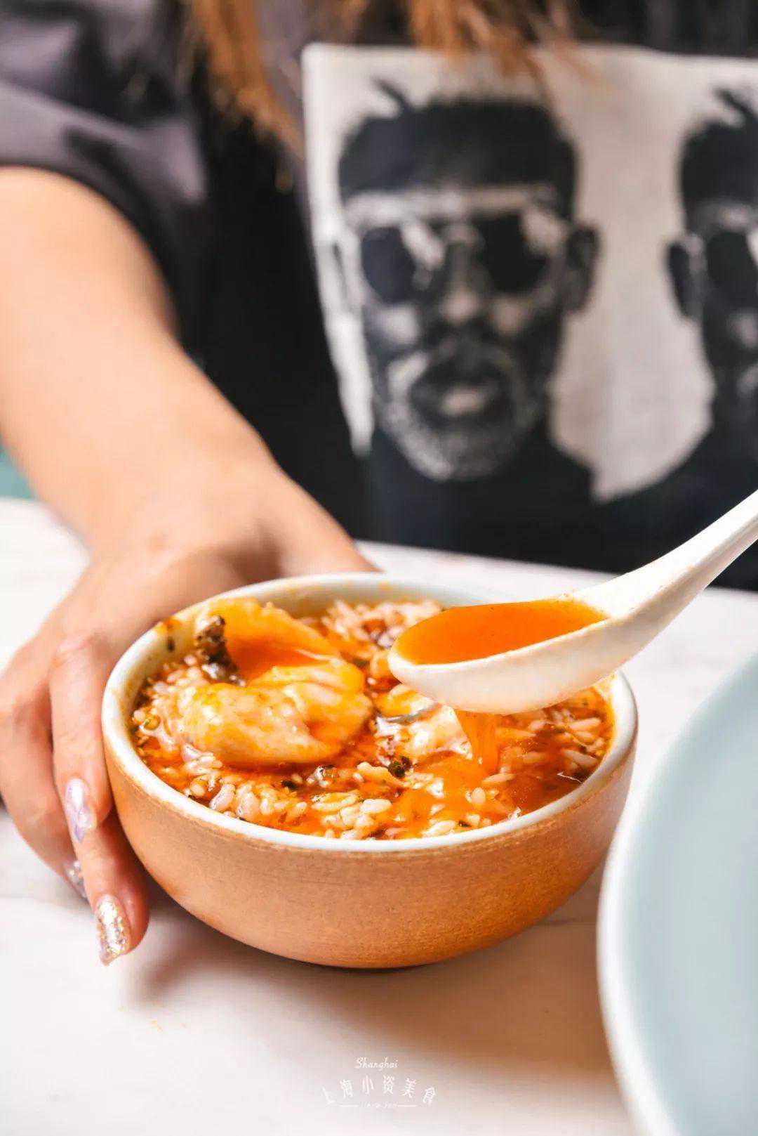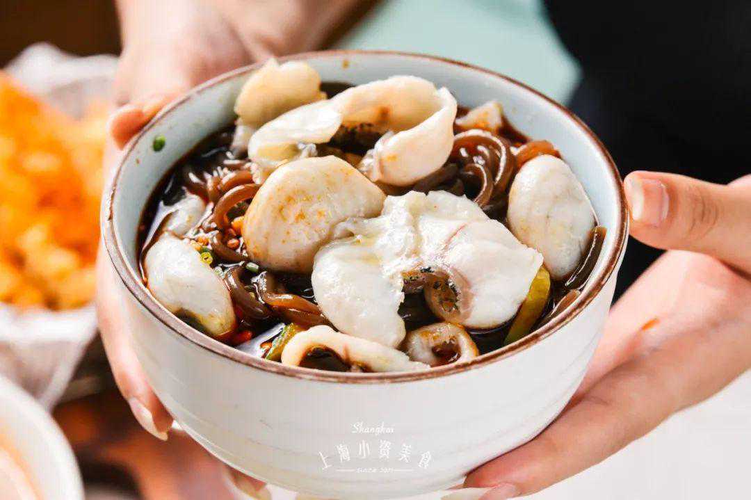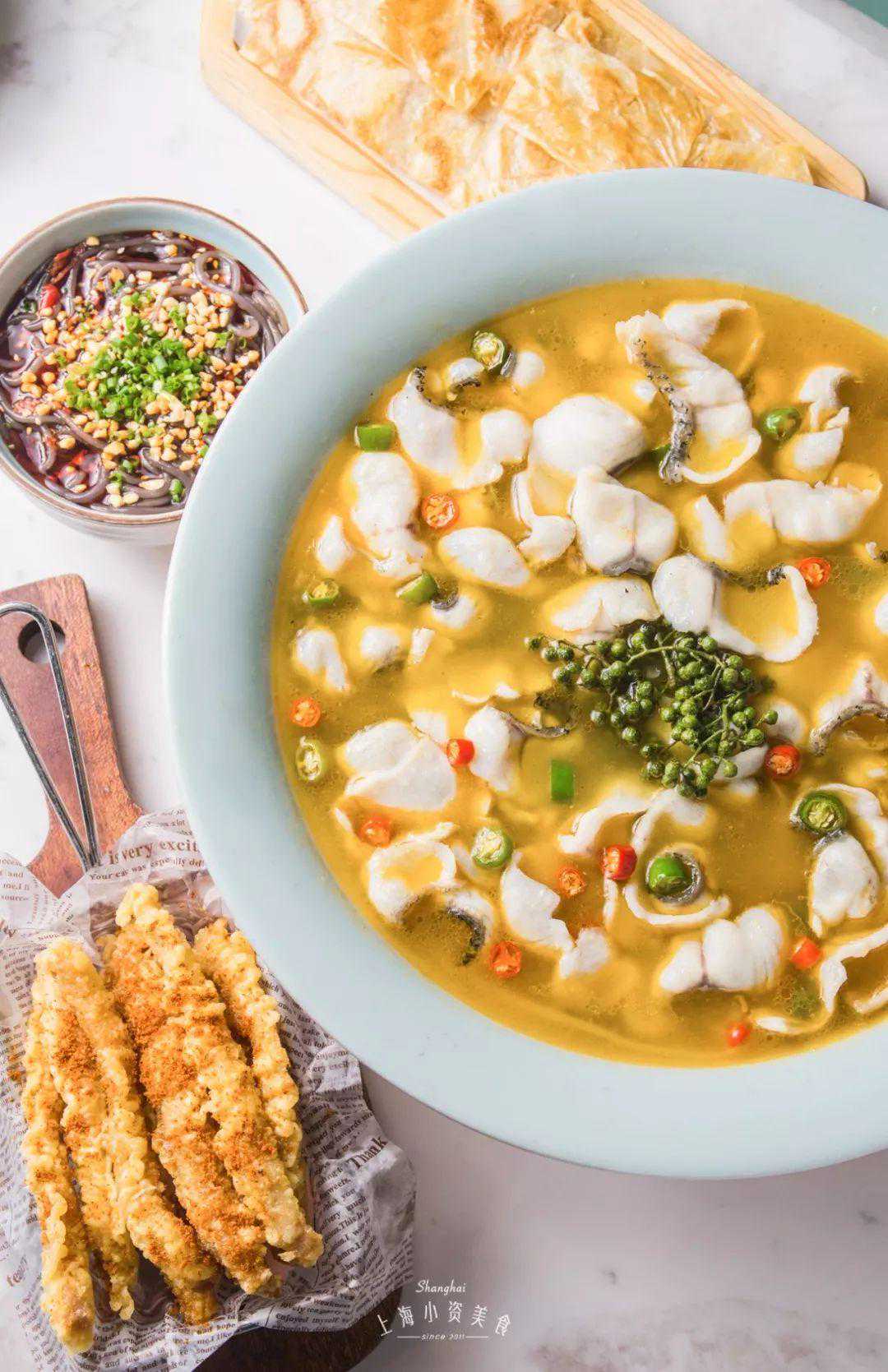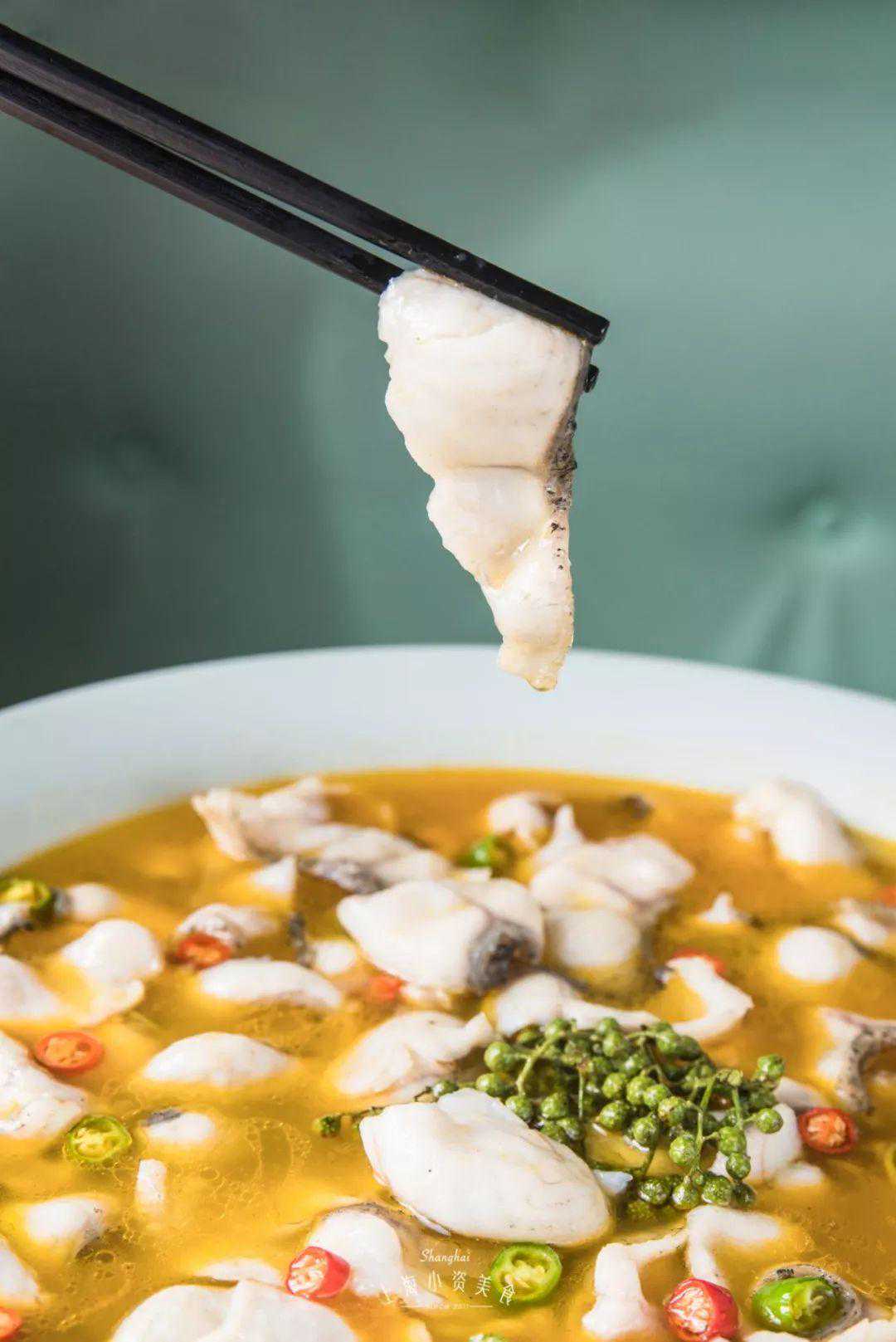 用明学的方式来吃鱼给我加满青花椒!小明哥毕竟是不一样的花火 普通人吃青花椒砂锅鱼 招牌的青花椒鱼一共有2种口味:适合大众经典选择的微麻微辣和舌尖触电的中麻中辣。 比起微麻微辣,中麻中辣的色泽更金黄。手工切片至2mm的黑鱼片,薄若蝉翼,色泽雪白。选用的青花椒也是重庆江津九叶青花椒,麻而不苦,清香提味。 吃麻星人之进阶版 泡饼吃 双手暴扣米饭 “everyboby在你头上暴扣“,没想到我们这句rap用在了吃法上。手拿两碗饭,扣在汤里,记得速度要快,直接一气呵成。 暴扣之后,记得用力搅匀,把饭完全浸没在汤汁里,就变成了阿拉上海宁超喜欢的汤泡饭。一口汤饭,一口鱼片,鲜香浓郁,一口气能夯两碗。 怒拌“鱼粉”法 没想到每次必吃的主食酸辣蕨根粉也能变成一种隐藏吃法!把鱼片和蕨根粉拌在一起,一碗“鱼粉”就来了,谁还不是个“小当家”呢! 上面的花生也是点睛之笔,蕨根粉韧劲十足,酸辣爽口,特别开胃,一口口嗦溜到停不下来~ 麻麻辣辣上头法 众所周知口水鸡特别好吃,但你们可能不知道,鱼片蘸口水鸡的酱汁,真的巨好吃!爽滑的鱼片配上秘制的酱料,竟然给我吃出了一股水煮鱼的感觉! 浇满番茄汁 如果你实在不能吃辣,不如可以试试番茄味的砂锅鱼!上桌先喝一口汤,嚯,好家伙!日晒12小时以上的新疆红熟番茄,味道果然够浓郁。 外婆酥肉 远看以为是茴香小油条,没想到是酥肉!和其他的小酥肉不同的是,这里每一条酥肉都是plus版本,肉质扎实,轻轻咬上一口还有肉汁爆出,配上辣椒粉,灵得不行~ 香辣牛蛙、咸蛋黄牛 呼叫牛蛙星人!无论是香辣还是咸蛋黄都很好吃,紧实的牛蛙腿鲜嫩多汁,包你吃完两串还想再来四串!