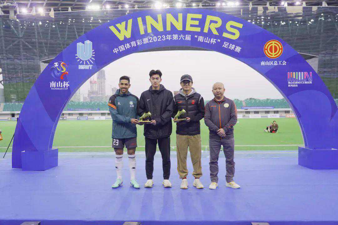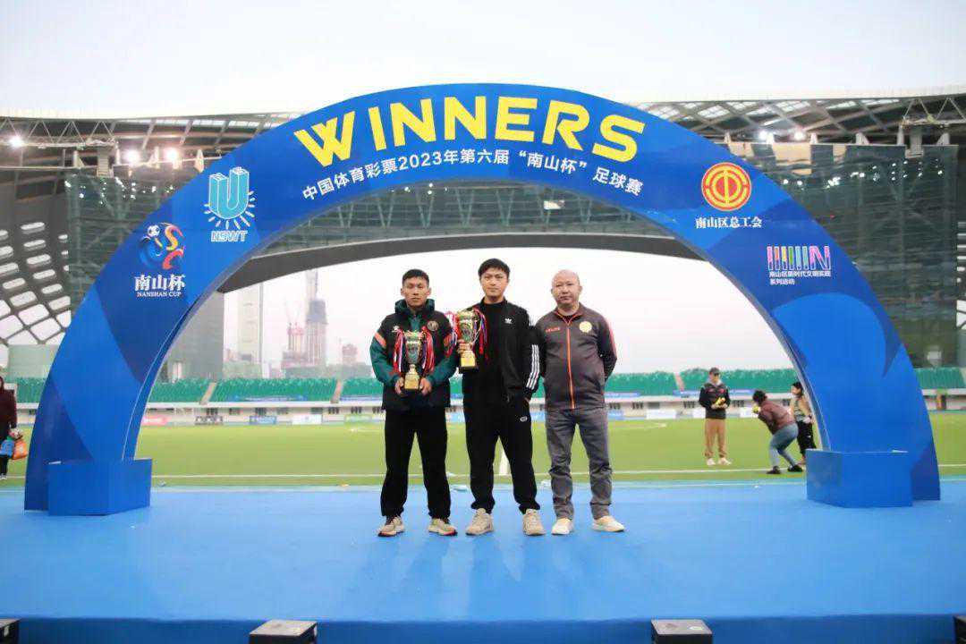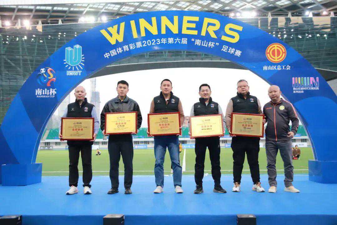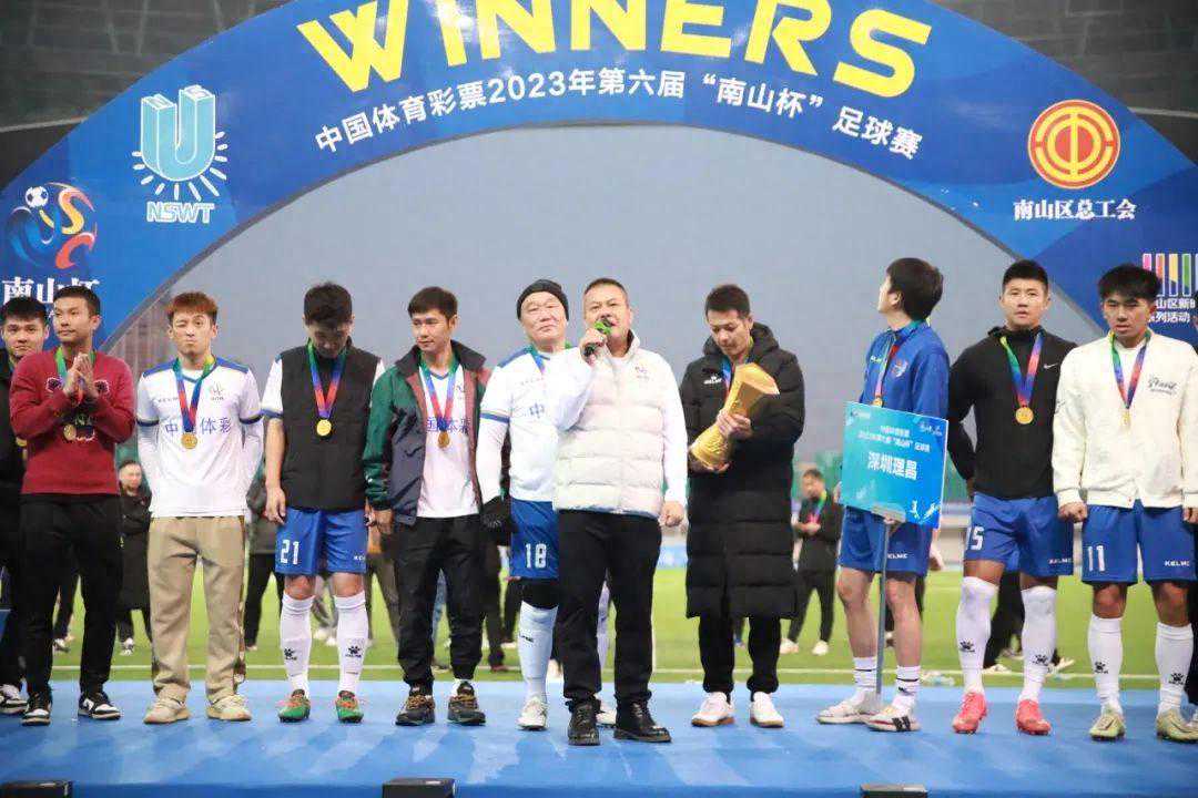 2023第六届 南山杯足球赛 【圆满闭幕】 12月24日,随着南山区体育总会刘飞龙会长宣布2023第六届“南山杯”足球赛闭幕,历时260天,八个多月,93支队伍,2608名参赛队员,上演了150场精彩纷呈的鏖战的“南山杯”足球赛终于在深圳湾体育中心内场圆满落下帷幕,深圳理昌,强贝1919分别获得本年度甲乙组冠军! 赛事介绍 2018年起,南山区文化广电旅游体育局倾力打造“南山杯”IP赛事,至今已举办六届。多年来不断完善赛制、升级赛事服务,扩大赛事规模,极大程度提高“南山杯”足球赛的专业程度。 本届由南山区文化广电旅游体育局主办,南山区体育总会、南山区足球协会承办,南山区新时代文明实践中心协办,深圳市体育彩票中心支持的2023年第六届南山杯足球赛,参赛球队93支,参与球员高达2608人!目前是深圳市规模最大、最规范、最具影响力的11人制足球赛,也是南山区、深圳市乃至粤港澳大湾区最具特色的品牌赛事。 颁奖仪式 出席2023“南山杯”足球赛闭幕式的领导有:南山区文化广电旅游体育局群体科科长王宇涵,南山区体育总会会长刘飞龙,南山区足球协会会长古庆文,卡尔美(深圳)总经理詹益彪,托雷斯(广东)体育用品有限公司总经理魏永杰,我是球星APP负责人陈彦榕,深圳中食匠心食品有限公司总经理黄育东,陈正韶体育康复副总经理刘灏。 深圳理昌获得“南山杯”甲组冠军,南山区体育总会会长刘飞龙为获奖队伍颁奖。 (甲组冠军:深圳理昌) 强贝1919获得“南山杯”乙组冠军,南山区文化广电旅游体育局群体科科长王宇涵为获奖队伍颁奖。 (乙组冠军:强贝1919) 获得甲乙组亚军的队伍是兴隽科技和星中晨FC,南山区足球协会会长古庆文为获奖队伍颁奖。 (甲组亚军:兴隽科技) (乙组亚军:星中晨FC) 获得甲乙组季军的队伍分别是兿品高国际和兴隽小伙伴,南山区足球协会会长古庆文为获奖队伍颁奖。 (甲乙组季军:兿品高国际、兴隽小伙伴) 获奖的甲组最佳射手是来自兴隽科技的JOAO和工勘集团的梅碧瑞,他们在本次南山杯甲组比赛中一共打进了7个进球,并列第一;乙组最佳射手奖是晶达丰队的单峰,他在本次南山杯乙组比赛中一共打进了10个进球。 2023年度合作伙伴奖,他们分别是中国体育彩票、建设银行深圳分行南山支行、卡尔美、托雷斯、文体保、陈正韶运动康复、可可豆文化传媒、中食匠心、百事可乐、我是球星。 精彩瞬间 “南山杯”乙组决赛 下午1点半,乙组决赛率先展开,由星中晨FCVS强贝1919,双方比赛非常激烈,但上半场星中晨FC还是抓住机会,在32分钟完成射门得分。 下半场强贝1919加强了攻势,终于在78分钟抓住了进攻的机会,凭借精彩的传球配合下由23号小将完成射门得分,双方战平。虽然双方后面也有几脚精彩的射门,但都被门将将球稳稳拿住。 点球大战强贝1919门将发挥神勇,单手将球挡出,最终强贝1919以5:4战胜星中晨FC,逆转夺得乙组冠军奖杯。 “南山杯”甲组决赛 下午3点半,随着主裁判的一声哨响,甲组决赛正式展开,这也是本届“南山杯”最具实力与观赏性的一场比赛,由兴隽科技VS深圳理昌。 双方球员在场上拼抢十分激烈,比赛节奏更加紧凑。上半场44分钟,深圳理昌在主队禁区外拼抢中拿到球权,由11号球员卢一锋打出一脚精彩的死角地滚球,率先完成射门得分。 下半场双方对抗更加激烈,进攻节奏更加频繁,但都没能攻破对方的后防线。直到74分钟深圳理昌在防守时出现犯规,裁判给出任意球,由23号球员JOAO罚出一脚美妙的弧线,直挂球门右边死角,帮助兴隽科技扳平比赛。球场气氛瞬间达到高潮,双方再次回到同一起跑线,双方球员的斗志也都被完全激发出来。 90分钟,深圳理昌再次抓住机会,发起了一波协同进攻,虽然打门时被门将将球挡出,但深圳理昌也获得了一次角球的机会,这一次深圳理昌没有脚软,由21号张君将球推入球门。补时环节,兴隽抽调了大量的精力投入进攻,希望能够改写比赛的结局,但也为自己的后防线埋下了巨大的隐患。 93分钟,深圳理昌在防守中拿到球权,再次发起反攻,倒三角传球骗过门将由16号球员张一波完成射门得分,彻底终结比赛,最终深圳理昌以3:1战胜兴隽科技,获得甲组冠军。 燃情南山杯,我们明年再见!