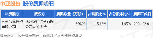 证券之星消息,中亚股份(300512)2月2日公开信息显示,股东杭州沛元投资有限公司向杭州银行股份有限公司大关支行合计质押800.0万股,占总股本1.95%。质押详情见下表: 截止本公告日,股东杭州沛元投资有限公司已累计质押股份800.0万股,占其持股总数的5.13%。本次质押后中亚股份十大股东的累计质押股份占持股比例见下图: 中亚股份财务数据及主营业务: 中亚股份2023年三季报显示,公司主营收入7.2亿元,同比上升6.86%;归母净利润6026.11万元,同比下降30.69%;扣非净利润5108.56万元,同比下降37.75%;其中2023年第三季度,公司单季度主营收入2.44亿元,同比上升1.97%;单季度归母净利润824.62万元,同比下降74.64%;单季度扣非净利润613.06万元,同比下降80.42%;负债率37.8%,投资收益121.58万元,财务费用-334.01万元,毛利率32.14%。 中亚股份(300512)主营业务:设计、制造中高端的智能包装设备。