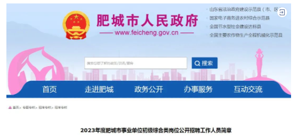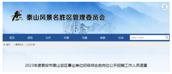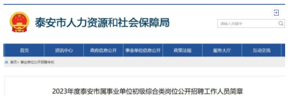 2月16日 泰安市、各县市区陆续 公布事业单位公开招聘简章 最全整理 ↓↓↓ 招聘岗位表汇总 市直:2023年度泰安市属事业单位初级综合类岗位公开招聘岗位汇总表.pdf 泰山区:2023年度泰山区事业单位公开招聘工作人员岗位汇总表.pdf 岱岳区:2023年度岱岳区事业单位初级综合类岗位公开招聘工作人员岗位汇总表.pdf 新泰市:2023年度新泰市事业单位初级综合类岗位公开招聘工作人员岗位汇总表.pdf 肥城市:2023年度肥城市事业单位初级综合类岗位公开招聘工作人员岗位汇总表.xls 宁阳县:2023年宁阳县事业单位综合类岗位公开招聘岗位汇总表 东平县:2023年度东平县事业单位初级综合类岗位公开招聘岗位汇总表.pdf 高新区:2023年度泰安高新区乡镇街道事业单位初级综合类岗位公开招聘工作人员岗位汇总表.xlsx 泰山景区:2023年度泰安市泰山景区事业单位初级综合类岗位公开招聘工作人员岗位汇总表.pdf 徂汶景区:2023年度泰安市徂汶景区事业单位初级综合类岗位公开招聘工作人员岗位汇总表.pdf 简章汇总 ↓↓↓ 泰安市直 共招聘228个岗位316人 2023年度泰安市属事业单位初级综合类岗位 公开招聘工作人员简章 根据事业单位公开招聘有关规定,结合泰安市属事业单位岗位空缺情况和工作需要,现将2023年度泰安市属事业单位公开招聘初级综合类岗位(以下简称“初级岗位”)工作人员有关事项公告如下: 一、应聘条件和范围 (一)应聘人员应具备的基本条件 1.具有中华人民共和国国籍; 2.年龄应在40周岁以下(1982年2月21日以后出生); 3.遵守宪法和法律; 4.具有良好的道德品行和适应岗位的身体条件、心理素质; 5.具有招聘岗位要求的专业或技能条件; 6.具有招聘岗位所需的其他条件; 7.法律、法规规定的其他条件。 (二)不得应聘的人员范围 1.现役军人,在读的非应届毕业生,因犯罪受过刑事处罚的人员,被开除党籍的人员,被开除公职的人员不得应聘; 2.被依法列为失信联合惩戒对象的人员,涉嫌违纪违法正在接受有关机关审查尚未作出结论的人员,在各级各类公务员和事业单位招考(聘)中被认定有舞弊等严重违反纪律行为的人员,以及法律法规规定不得聘用的其他情形人员不得应聘; 3.应聘人员不得报考有《事业单位人事管理回避规定》(人社部规〔2019〕1号)规定情形的岗位。根据纪检监察相关规定,与本级或上一级纪检监察机关重点监督对象或在本级纪检监察机关工作的干部有夫妻、直系血亲、三代以内旁系血亲及近姻亲关系的,不得报考市纪委监委所属事业单位岗位;有夫妻、三代以内旁系血亲及近姻亲关系的考市纪委监委所属事业单位岗位。 (三)定向岗位人员应聘条件 根据国家、省及我市有关政策规定,定向招聘岗位仅限特定条件人群应聘,报考定向岗位人员还需同时符合岗位规定的招聘条件。 1.“服务基层人员”定向岗位。山东省2012年以前选聘的大学生村官,2016年以前招募的“三支一扶”计划人员,2021年以前选派的“大学生志愿服务西部计划”全国项目、地方项目和山东项目等服务基层项目人员,以及外省2021年以前选派的“大学生志愿服务西部计划”全国项目、地方项目山东生源人员,服务满2年且完成协议书(合同)规定的服务期限、考核合格的,可应聘面向服务基层人员定向岗位。服务期内的服务基层项目人员的服务经历计算至2023年9月30日。已享受优惠政策被录用为公务员或招聘为事业单位工作人员的,不得再次应聘面向服务基层项目人员招聘岗位。另外,具有5年及以上泰安市乡镇(街道办事处)所属事业单位工作经历的正式在编在岗人员可应聘面向服务基层人员定向岗位,工作年限计算截至2023年2月21日。 2.“退役大学生士兵”定向岗位。按照《泰安市事业单位专项招聘退役大学生士兵实施办法》(泰人社发〔2022〕6号)规定,符合条件的退役大学生士兵可应聘面向退役大学生士兵的定向招聘岗位。退役大学生士兵应聘资格由入伍批准地县级兵役机关和安置地退役军人事务部门审查确定并负责解释。 3.“残疾人”定向岗位。持有有效期内《中华人民共和国残疾人证》(2023年2月21日前核发),且为山东户籍或山东生源,符合岗位要求的残疾人可应聘面向残疾人招聘岗位。持有退役军人事务部门颁发的《中华人民共和国残疾军人证》(五级至八级,2023年2月21日前核发),且为山东户籍的残疾人,可应聘符合条件的面向残疾人招聘岗位,比照岗位要求的残疾人身体条件执行。 (四)岗位应聘条件 1.岗位专业要求。各招聘岗位专业要求由用人单位及其主管部门根据行业特点和单位需要,主要参照教育部制定的现行高等教育专业目录和人力资源社会保障部制定的全国技工院校专业目录设置。应聘时以应聘人员所获毕业证或国家承认的学历教育证书上注明的专业为准。应聘人员在普通全日制高等学历教育阶段取得国家承认的辅修专业证书、双学位证书、第二学士学位证书的,可与相应的毕业证书配合使用,依据辅修专业证书、双学位证书、第二学士学位证书注明的专业报考。 2.学历学位要求。2023年普通高校应届毕业生以及与国(境)内普通高校应届毕业生同期毕业的留学回国人员的学历、学位及相关证书,须在2023年7月31日前取得;其他人员应聘的,须在2023年2月21日前取得国家承认的学历、学位及相关证书。对暂未取得国(境)外学历学位认证的留学回国人员,可采取“承