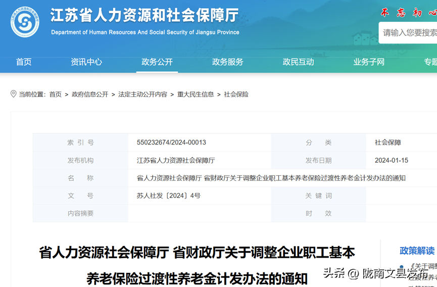 近日,江苏省人社厅发布了《关于调整企业职工基本养老保险过渡性养老金计发办法的通知》,对江苏省企业职工基本养老保险过渡性养老金计发办法作出新调整。