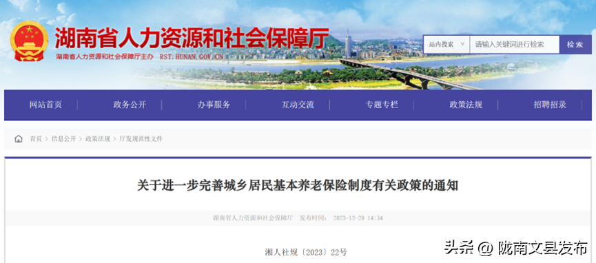 为进一步做好全省城乡居民基本养老保险工作,湖南省人社厅发布《关于进一步完善城乡居民基本养老保险制度有关政策的通知》,相关政策调整如下: