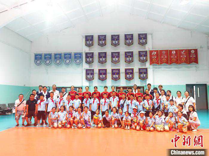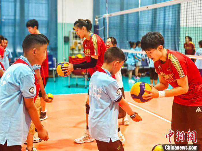 中新网天津(张少宣)“双脚前后站立,双手自然弯曲,这样才能将球稳稳垫起。”天津女排队员陈博雅正在认真为藏族学生们传授排球技巧。 25日,由天津第十批援藏教师带领,“津昌”夏令营中32名昌都市实验小学学生走进天津女排训练基地,观摩女排队员训练。随后,基地内上演了一场生动的互动教学。 7月25日,“津昌”夏令营中32名昌都市实验小学学生走进天津女排训练基地。图为女排队员教授学生们排球技巧。张少宣摄 津昌少年手牵手,民族团结一家亲。2021年10月12日,中国女排奥运冠军李珊、张娜来到昌都市实验小学参加少先队主题队日暨奥运女排事迹报告会,“女排精神”便在孩子们心中种下了一颗永远拼搏的种子。 本次夏令营,昌都市实验小学4~5年级学生回访天津,在复康路天津女排训练基地内,不仅“沉浸式”体验了职业女排球队的训练日常,天津女排队员手把手教授孩子们排球技巧,讲解排球运动要领,更是令所有到场学生兴奋不已。 7月25日,“津昌”夏令营中32名昌都市实验小学学生走进天津女排训练基地。图为天津女排队员、教练员与昌都市实验小学师生合影留念。张少宣摄 “作为新中国成立后西藏自治区建立的第一所小学,昌都市实验小学被誉为‘雪域高原第一个人才摇篮’,学校培养了第一代藏族飞行员罗嘎等1万多名优秀毕业生,学生们都有着一颗奉献祖国的心。多年来,天津市在各领域支援昌都,2021年,李珊等奥运冠军来到学校给孩子们讲解女排精神。随后,学校便刮起了一阵‘排球旋风’。支教教师在校园内开展的排球课,也成了学生们最喜欢的课程。”本次夏令营领队、昌都市实验小学政教处主任李林泽表示,排球进校园不仅开阔了孩子们的视野,也让学生在运动中更加领会了不断拼搏、克服困难的体育精神。 7月25日,“津昌”夏令营中32名昌都市实验小学学生走进天津女排训练基地。图为女排队员教授学生们排球技巧。张少宣摄 “我刚才学习了基础的排球击球方法,还和排球队的姐姐们进行了对练。姐姐们球技很厉害,也很耐心。我平时就喜欢排球和羽毛球,也会在电视里看中国女排的比赛。参加排球运动后,感觉自己变得更自信也更开朗了。”昌都市实验小学五年三班学生贡嘎达吉说道。(完)