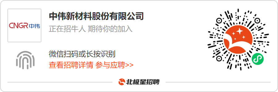 大家好,我是锂电小达人。 每天分享全国地区新能源企业招聘信息以及行业信息。 欢迎大家讨论、交流、收藏、点赞,感谢! 今天给大家分享的是中伟新材料股份有限公司招聘信息。 中伟新材料股份有限公司(中伟股份300919.SZ)成立于2014年9月,为湖南中伟控股集团有限公司旗下控股子公司、上市主体,是专业的新能源材料综合服务商,属于国家战略性新兴产业中的新材料、新能源领域。公司被认定为国家企业技术中心、博士后科研工作站、国家高新技术企业、国家技术创新示范企业,获得“国家智能制造工厂”、“绿色制造工厂”、“绿色设计示范企业”等称号。 中伟股份已与国内外数十家知名企业达成战略合作,公司自主开发的高电压四氧化三钴、高镍NCM、NCA等新能源材料跻身中国、欧美、日韩地区世界500强企业高端供应链,被广泛应用于3C、动力及储能领域。公司核心产品三元前驱体、四氧化三钴连续多年出货量稳居全球第一。 带薪年假通讯津贴定期体检免费班车尊重人才股票期权发展空间大五险一金公司规模大管理规范