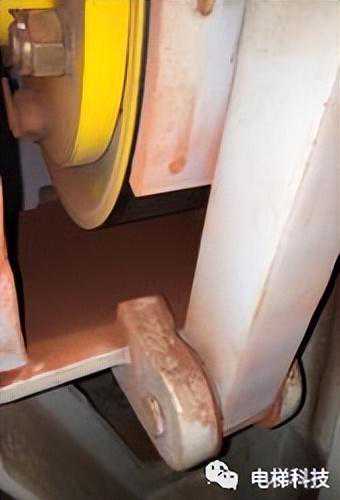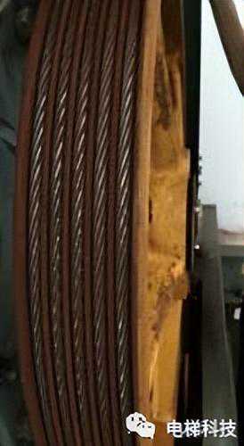 图1钢丝绳锈蚀及曳引轮磨损情况
