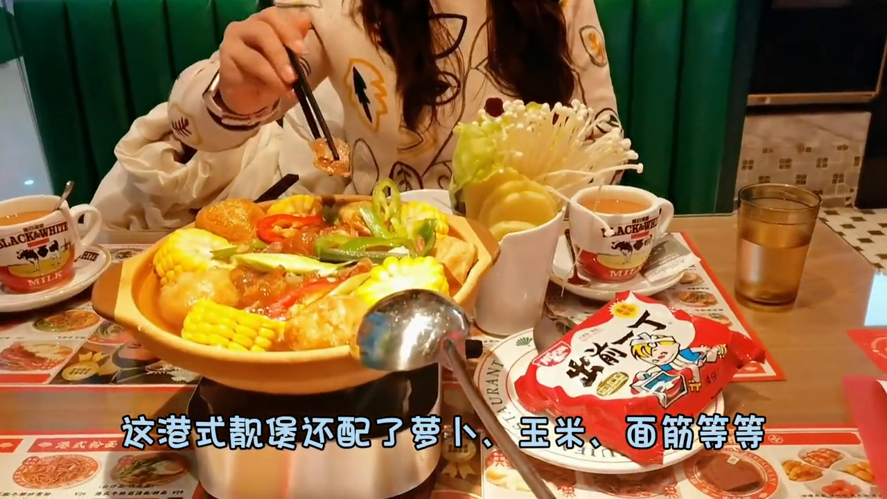 翠发港式茶餐厅。 说到聚餐,翠发总有这么一个套餐让我忍不住流口水。这可以说不是一般的港式靓煲,更像是用心炖煮的艺术。每一块牛腩都吸收了满满的汤汁精华,肉质嫩,一抿就化了。而且这个套餐的秘制汤汁香味绝了。 港式靓煲还配了萝卜、玉米、面筋等等这些小惊喜,吸足了汤汁的精髓,一口下去满嘴生津,营养又健康。再配上大家熟悉的出前一丁面,这美味真的是回味无穷,保证让你吃了还想吃。 忙碌了一天,约上朋友来这么一份港式靓堡,再来一杯港式奶茶犒劳自己,简直是人生一大享受。所以别犹豫了,赶紧行动。翠发的这个套餐等着你来品尝,让你的味蕾跳起来。 我是柠檬,我们下期见。