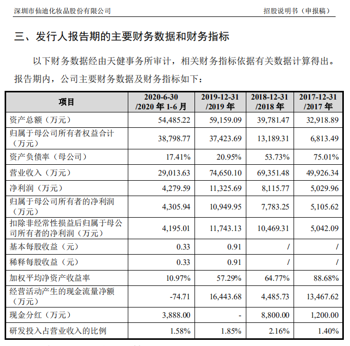国内化妆品市场由外资品牌占有更多份额,但本土化妆品企业争相上市融资,向外资巨头发起挑战。 深圳市仙迪化妆品股份有限公司(下称“仙迪股份”)即将冲刺创业板上市,在护肤品市场的市场份额仅有0.7%,行业排名为第15名。其对手不仅仅包括本土企业珀莱雅(603605.SH)、丸美股份(603983.SH)、上海家化(600315.SH)等,也包括了行业排名靠前的欧莱雅、雅诗兰黛、宝洁等外资巨头。 护肤品市场份额国内企业第15名 仙迪股份主要从事化妆品研发、设计、生产和销售业务,主要经营“伊贝诗”、“果本”和“诗婷露雅”三个品牌,并拥有“伊海专研”、“BIOLIGHT”等其他品牌,品牌定位各具特色,主要产品包括护肤、清洁及其他等多类化妆品。 根据欧睿国际(Euromonitor)数据(本文以下市场份额数据均来自欧睿国际),2019年仙迪股份产品市场占有率位列国内护肤品企业第15位,占有率仅有0.7%。2019年仙迪股份营业收入7.47亿元,实现净利润1.13亿元,各种财务数据跟竞争对手相比都有一定差距。 2019年,根据欧睿国际的统计,我国护肤品前二十大企业总的市场占有率约为62.9%,其中国内化妆品企业占据9席。护肤品市场份额前五名依次为欧莱雅、雅诗兰黛、宝洁、资生堂和上海百雀羚。 国内企业已上市的公司当中,多家公司是仙迪股份的强大竞争对手。 比如上海家化,2019年营业收入75.97亿元(超过仙迪股份10倍),扣非归母净利润3.80亿元,2019年产品市场占有率位列国内护肤品企业第四位。珀莱雅2019年营业收入31.24亿元,扣非归母净利润3.86亿元,2019年珀莱雅产品市场占有率位列国内护肤品企业第六位。跟仙迪股份行业地位更接近的则是丸美股份(603983.SH),2019年营业收入18.01亿元,扣非归母净利润4.51亿元,2019年产品市场占有率位列国内护肤品企业第十位。 有消费行业分析师向第一财经记者表示,国内情况来看,化妆品行业门槛其实比较低,国内化妆品生产水平参差不齐,大部分企业研发能力有限,部分企业采取低价的策略进行竞争换取短期利益,产品质量未必有保证。市场地位不高的企业对管理层的要求其实很高,几乎不怎么容许犯错,一旦“一招不慎”就会让企业蒙受较大损失,这也是先迪股份、丸美股份、珀莱雅这批国产企业面临的最大挑战。 先迪股份招股书称,品牌定位上,东方人不同于西方人的肤质、审美追求,国产品牌定位往往更为本土化,契合我国居民的肤质特点推出更适合国人的化妆品,例如在功能上以保湿、美白等功能为主,而在配方上常辅以植物、天然等概念,更容易为国人接受。市场层次上,国产品牌与国际品牌进行差异化竞争,依靠产品性价比优势,主攻中低端大众护肤需求,避免与国际品牌在一、二线城市中高端市场直接冲突,在具有牢固的用户基础上再逐渐向中高端渗透。 另外,亚太地区消费者注重保湿、护肤和美白,2019年护肤品市场占比达42.78%,远高于欧美地区消费者。欧美地区消费者对于彩妆和香水较为偏爱,市场占比远高于亚太地区消费者。 毛利率不如对手,上下游依赖巨头 对仙迪股份来说,毛利率不如主要竞争对手,而且面临着原材料成本上升的压力。上下游对较大供应商和电商平台的依赖,也是未来可能的不稳定因素。 “公司主营业务毛利率与上海家化和拉芳家化日趋接近。”招股书称。 不过,相对于主要竞争对手珀莱雅、丸美股份来说,2020年上半年不足55%的毛利率,仙迪股份这个数据就明显不如珀莱雅的近60%以及跟仙迪股份行业地位接近的丸美股份,后者毛利率更是高达67.56%。 对此,仙迪股份表示,毛利率低于丸美股份,主要由于主打产品毛利率水平和收入占比所致。丸美股份毛利率最高的产品为眼部护肤类产品,2017年至2019年毛利率分别为73.28%、73.40%和70.28%,收入占比分比为31.77%、33.79%和30.68%。而仙迪股份毛利率低于珀莱雅,主要由于珀莱雅线上直营收入占比较高,2019年达28.36%,直营模式毛利率通常较高,仙迪股份2019年直营收入占比为12.72%。 除了毛利率不如竞争对手以外,仙迪股份还要面临原材料成本上升的压力。招股书称,化妆品行业的上游是原料及包装材料制造行业,原料主要包括水、甘油、乳化剂、稳定剂、油脂、功能性添加剂和香精等;包装材料包括纸包装、塑料包装、软包装膜袋和玻璃包装等。 以包装材料为例,从纸浆期货的情况来看,纸浆连续(SP7777)从6月10日的4070元/吨大幅上涨到12月16日的高点5162元/吨,涨幅超过25%。近日,多家纸企再发涨价函,宣布自12月起对产品提价,提价幅度基本在200元/吨,自8月起每个月企业都要发一次涨价函。 关于未来纸浆价格,方正中期期货分析师汤冰华表示,在针叶浆供应增量较少,需求继续改善的情况下,支撑纸浆向上的逻辑未变。 上游供应商方面,诺斯贝尔是仙迪股份的重要外协加工商,报告期内与诺斯贝尔正常履约且合作关系良好。仙迪股份称,“公司亦有与诺斯贝尔产品质量不存在重大差异的多家外协厂商作为替代选择。” 然而,仙迪股份对诺斯贝尔的依赖逐步上升,占采购金额的比例,从2018年的8.26%大幅上升到2020年上半年的25.55%。对此,仙迪股份解释称,外协加工金额逐年上涨,主要系委托诺斯贝尔加工金额增加,主要委托诺斯贝尔加工面膜类和精华类(安瓶、冻干粉)产品。 下游方面,仙迪股份对唯品会依赖不小,各品牌在唯品会分别通过开设品牌店方式进行运营,2017年到2020年上半年仙迪股份通过唯品