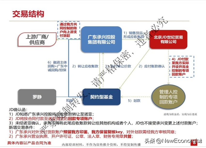 案件尚未有定论,腾讯新闻《潜望》通过对话投资人、查阅数百页判决书、内部资料等,力图最大程度上还原诺亚是如何一步步陷入“好姐妹”罗静的圈套,以及四年来它与投资人的纠葛故事。 腾讯新闻《潜望》特约作者刘娟 多年前,杨洋(化名)经朋友介绍成为了诺亚财富的一名客户,万没想到的是,在有幸躲过了辉山乳业爆雷、悦榕庄项目危机后,却终究没能逃过“承兴案”骗局。 京东一纸“愤怒”的声明,再一次揭开了诺亚承兴产品投资人的伤疤。 声明指出,在承兴系合同诈骗过程中,承兴系公司用假冒的京东公章、假冒的京东员工、假冒的京东系统、虚假的交易数据和假冒的京东银行账户,轻易骗过号称“全球综合金融平台”的诺亚财富及旗下歌斐资产,获得歌斐巨额融资,直致爆雷。 京东同时指出,“诺亚及歌斐资产拒不审视其内部管理问题,恶意对第三方京东发起匪夷所思的高额诉讼,企图混淆视听。” 随后,诺亚财富反击称,“承兴618”案件事发于2019年6月,上海歌斐作为原告,于2019年7月向法院对承兴和京东等被告方发起民事诉讼,法院已于2019年受理并予以立案。 2019年6月,诺亚子公司歌斐资产旗下创世核心系列产品爆雷,该产品底层资产为虚构的承兴对京东应收账款,承兴方操盘手罗静被送进大牢,818名投资人共损失34亿,杨洋就是其中之一。 诺亚之外,这个以虚构供应链贸易为底层资产的融资,还让其他机构也纷纷“中招”,包括湘财证券、摩山保理、云南信托等机构300余亿元资金涉及其中,并造成80余亿元损失。 如今,案件尚未有定论,我们通过对话投资人、查阅数百页判决书、内部资料等,力图最大程度上还原诺亚是如何一步步陷入“好姐妹”罗静的圈套,以及四年来它与投资人的纠葛故事。 01 投资者“入坑” “2016年的时候我就开始买‘创世核心’系列的私募基金,最早底层资产是中国移动的应收账款,那时候的应收账款应该也是真的。”杨洋对腾讯新闻《潜望》回忆,歌斐大约从2016年就开始给承兴募资,只是底层的应收账款不同。 此后一段时间,该系列产品底层资产变成了承兴对苏宁的应收账款,而产品形态几乎和先前一样,也是固定收益;又没过多久(2017年),底层资产就全变成承兴对京东的应收账款。此后直至2019年6月爆雷前,该系列产品持续滚动发行,总规模100多亿。 据她透露,该产品对300万以上的投资人约定年化利率7.7%(100万的是7.5%),扣除税费后约7.4%左右,期限大多是6个月、9个月或者13个月。 杨洋介绍,因为有所谓“京东应收账款”概念的加持,这个产品很火爆,每一次都要靠抢,先打款抢占名额,晚一点就没有了,甚至直到爆雷当月还有投资人在打款。 她坦言,当初买这个产品最主要还是图个安全放心,因为7.4%的收益也就比银行理财高一点。 其所说的安全性,从彼时诺亚方面的宣传资料可以管窥一二:承兴对京东的应收账款以85折质押给歌斐资产,约定账户共管,基金管理人预留完全效力的印章并保管所有的UKEY(录入+复核),未经基金同意,该账户不对外划付资金。 按照原本宣称的交易结构,所谓的JD(指“京东”)确认函涵盖三点:1、JD知悉广东承兴控股将应收账款转让至诺亚;2、JD将按合同付款至诺亚指定的回款专用账户;3、未经诺亚确认,承兴不得将此笔应收账款转让给其他机构或者个人,JD也不接受承兴变更上述付款账户。 除此之外,按照宣传资料显示,两方还约定广东承兴对外支付货款账户预留诺亚印鉴、诺亚保留复核key,对外划款需经歌斐审核同意;广东承兴营业执照、开户许可证、公章、法人章、财务专用章共管。 如此严丝合缝的风控程序,让杨洋更加安心,也正因为如此,哪怕后来得知诺亚是被承兴方面私刻的“萝卜章”骗过,她仍然认为,只要真正像诺亚自己宣称的那样控制并监督共管账户的资金往来,每一笔钱是不是真的从京东的账户打款的,都一目了然,不至于沦落到待罗静被抓方才发现问题的地步。 她据此认为,诺亚方面宣称的交易结构,有且仅有两个可能:第一,所谓风控本身形同虚设;第二,诺亚知情,但因为某种原因(比如罗静先前良好的还款记录)而选择无视。 真相究竟如何? 02 “内鬼”惹祸? 内部员工方建华,据称是诺亚方在该案中的“内鬼”。 据腾讯新闻《潜望》获得的上海杨浦区法院判决书显示,方建华先后收受罗静方面300万港币贿赂,并为其融资提供方便。该案已于2021年3月判决,判决书显示方建华犯非国家工作人员受贿罪,判处有期徒刑三年,罚金人民币十万元。 但一些投资人认为,“方建华的行为发生在诺亚正行的任职期间,如果由此产生损失也是职务行为导致,责任应由诺亚承担。” “诺亚也许是受害者,但应当向真正的犯罪行为主体追责,而不是把损失转嫁给投资人。”杨洋说,打个比方,高速公路上发生连环追尾,前车必须也只能向紧挨的后车追责,后车并不能因为自身也是受害者就不赔了(免除对前车赔偿的法律责任)。 事实是,方建华的身份,并非创世核心系列基金管理人歌斐资产的员工,而是任职于诺亚旗下基金销售公司诺亚正行,其先后担任过团队高级副总监、团队资深副总监。 判决书显示,安徽汇信金融投资集团有限责任公司(为安徽古井集团有限责任公司子公司)经诺亚公司介绍,受让承兴公司对京东公司的应收债权。其间,诺亚公司的方建华重点推荐了与承兴公司的融资项目,后在方建华等人的陪同下于2