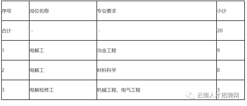 掌上春城讯7月1日,记者从昆明理工大学就业网获悉,云南云铝海鑫铝业有限公司2022年拟面向各高校招聘铝电解操作工、电解检修工岗位工作人员20名。 一、招聘岗位 二、招聘对象 2022年全国全日制普通高等院校统招应届毕业生二本及以上院校毕业生,以及国(境)外全日制本科及以上学历、学位的归国留学生。 三、招聘流程 (一)简历筛选。招聘简章发布后,对收到的简历进行筛选。 (二)笔试、面试。组织符合条件的人员进行笔试、面试,综合成绩=笔试成绩×50%+面试成绩×50%。 (三)确定拟录用人选。根据综合成绩确定拟录用人选名单,并通知进行体检,放弃体检或体检不合格者不予录用。 (四)公示。对拟录用人选名单进行公示。 (五)办理入职。公示期满且无异议的,通知拟录用人选办理入职手续,签订劳动合同。 四、薪酬福利 (一)员工与公司签订劳动合同后,按照相关规定为员工缴纳六险二金,员工按规定享受带薪年休假、探亲假、婚假、丧假、产假; (二)员工薪酬:年人均收入9万元,试用期间,薪酬原则上按不低于同岗位标准的80%执行,研究生、双一流大学本科生及省属重点院校本科生月薪不低于5000元,其他院校本科生月薪不低于4500元; (三)视公司效益情况,可按一定比例增长员工薪资; (四)公司设有食堂、交通车、宿舍及其它生活配套设施,经常性展开文体娱乐活动,丰富员工业余生活; (五)新招录的全日制省属重点院校毕业的本科及以上学历学生计发学历补贴: 计发标准 1.硕士及以上学历人员50000元; 2.入选教育部双一流大学建设院校的本科学历或省属重点院校双学士人员40000元; 3.省属重点院校的本科学历人员26000元(不包含挂靠省属重点院校的本科院校毕业生); 计发方式 1.硕士及以上学历人员第一次发放15000元,第二次发放15000元,第三次发放20000元; 2.入选教育部双一流大学建设院校的本科学历或省属重点院校双学士人员第一次发放12000元,第二次发放12000元,第三次发放16000元; 3.省属重点院校的本科学历人员第一次发放8000元,第二次发放8000元,第三次发放10000元。 五、简历投递 (一)投递时间:2022年6月30日-7月31日 (二)投递邮箱:ylhxrlzyb@163.com 六、联系方式 联系电话: 联系人:陶经理 地址:云南省昭通市昭阳工业园区矿业加工基地(昭阳区青岗岭回族彝族乡沈家沟村民委员会) 掌上春城记者:李冬雨 责编:莫开井 终审:周建军