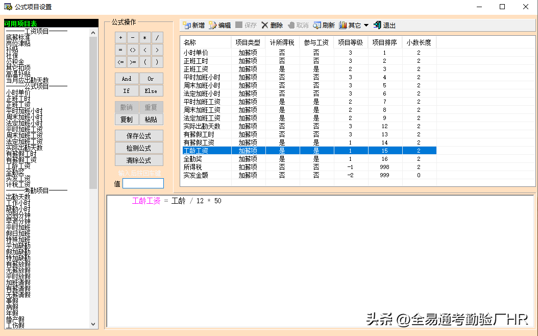 很多制造业工厂,生产型企业,在计算员工薪酬时,一般都要计算人员的工龄工资。工龄是员工在公司上班的年数,也代表着员工对公司工作的忠诚度。企业为了提高员工的工作积极性,鼓励员工的进取和实干精神,所以每月每年都会核算员工的工龄工资。 全勤奖,也是反映一个员工在工作中是否有积极性的表现。所以,很多制造业工厂,生产型企业,集团公司都会把全勤奖作为人员薪酬的一部分,来考核员工的工作状态。 很多制造业工厂、生产型企业的HR和财务人员,由于初次接触行政人事和财务工作,所以,对于如何怎么计算员工的工龄工资和全勤奖,总是愁眉不展,心烦意乱。用EXCEL计算核算人员工龄工资和全勤奖也非常的麻烦,因为工龄工资和全勤奖的条件是一个变量,有很多判断条件,无法设置函数公式。所以,大部分HR和财务人员仍然是用人工或手工计算工龄工资和全勤奖。 那么,使用全易通考勤薪酬管理系统软件如何快速核算计算工龄工资和全勤奖呢? 工龄工资和入职日期有关系,也和年数和月数有关系,所以只要计算出了工龄月数或年数,计算工龄工资就非常地快捷和方便。如下图所示: 全勤奖,跟员工的请假,迟到,早退,以及出勤天数有关系,所以,员工在当月没有请假,迟到和早退在规则的范围内,出勤天数大于或等于当月应出勤天数,这时员工才有全勤奖。如下图所示: 全易通考勤薪酬管理系统软件,界面友好,功能强大,操作方便简单,很容易上手,深受工厂企业公司HR和财务人员的喜爱和追捧。系统已经在珠三角,长三角及沿海一带的深圳、东莞、广州、佛山、惠州、中山、江门、汕头、珠海,以及沿海一带的江苏南京、常州、无锡、苏州、连云港、扬州、徐州、泰州昆山、镇江、宿迁、淮安、盐城、南通、山东青岛、烟台、威海、济宁、潍坊、日照、莱芜、临沂、德州、聊城、滨州、菏泽、淄博、枣庄、东营济南、泰安、福建福州、厦门、宁德、莆田、泉州、漳州、南平、龙岩的制造业工厂、生产型企业得到广泛安装使用。 注:以上文章为全易通原创文章,严禁复制和转载,一经发现,追究一切法律责任!