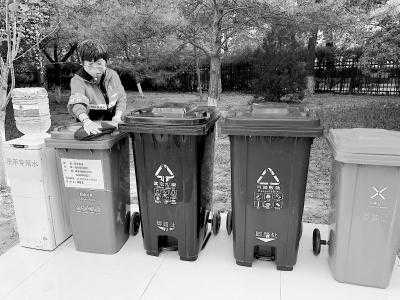 (曙光花园小区物业设专人值守垃圾分类投放驿站) 海淀区曙光花园小区,试行垃圾分类仅11天,已有九成小区居民迅速养成了垃圾分类投放的好习惯。5月6日,市委副书记、市长陈吉宁还曾经以“四不两直”方式到这个小区调研检查生活垃圾分类工作。这个“样板式”的小区究竟有什么过人之处?记者进行了一番实地探访。 6块洁白的瓷砖上,4个垃圾桶一字排开,旁边还围起一圈小栅栏。“这是我们小区新设的垃圾投放点儿,干净吧。”曙光花园观澜国际燕侨物业项目负责人周丽丽说,垃圾投放点儿收拾得越干净,居民越容易遵守规定,越愿意分类投放垃圾。 曙光花园观澜国际小区共有960余户居民。今年5月1日起,随着新版《北京市生活垃圾管理条例》的实施,小区也开始试点重新规划布置楼下的垃圾桶。 别看小区里只有5栋楼,但过去楼下布了13处垃圾投放点。在征求了小区居民意见后,13个垃圾投放点被压缩成3个垃圾分类驿站,每日专人值守时间长达14个小时。不仅如此,还在居民楼下额外增设5处临时投放点,在早晚扔垃圾高峰时段将垃圾桶摆出,高峰时段一过,便将垃圾桶收起。 “您扔什么垃圾?”在小区2号垃圾分类驿站值守的张晓飞原本是物业的安保人员,5月1日后,他又多了个新身份——小区中的垃圾分类指导员。 见到有居民拎着垃圾袋走来,张晓飞立刻招呼起来。居民举起手中的垃圾袋示意:“这袋是厨余垃圾。”检查无误后,张晓飞掀开盖子,用剪刀将厨余垃圾袋刺破,眼看着菜叶剩饭倒入绿桶后,又让居民将倒空的塑料袋扔进了灰色的其他垃圾桶中。 “我们发现,小区中九成以上的居民都已经能将厨余垃圾准确分出。”周丽丽介绍说,而这只用了短短一周左右的时间。