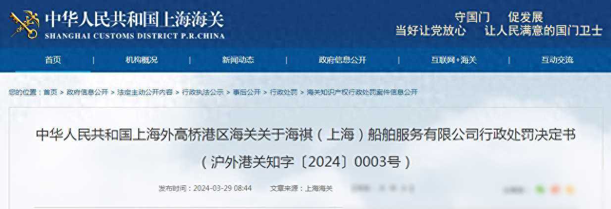 听说了吗?最近沪外港关对海祺(上海)船舶服务有限公司做出了一项行政处罚决定,让人十分好奇。在这个决定书(沪外港关知字〔2024〕0003号)中究竟发生了什么事情呢?让我们一起来揭开这个神秘的面纱,看看这个故事背后隐藏着什么。 首先,让我们来了解一下海祺(上海)船舶服务有限公司是什么样的一家企业。据了解,该公司是一家从事船舶服务的公司,业务范围涵盖船舶维修、保养、租赁等多个领域。作为一家在船舶服务行业有一定影响力的企业,他们的每一个举动都备受瞩目。 然而,就在最近,沪外港关发布了一则行政处罚决定书,将海祺(上海)船舶服务有限公司列为主要对象。这究竟是怎么一回事呢?决定书中到底揭示了什么样的问题?这些问题又是否和船舶服务有关?想必很多人都迫不及待地想要了解更多的详情。 据悉,这次行政处罚的决定书(沪外港关知字〔2024〕0003号)涉及到了一些涉及船舶服务领域的违规行为。具体来说,涉及到的可能包括违规维修、操作不当、违反安全规定等方面。这些问题不仅可能影响到公司的正常运营,更可能对船舶的安全和生命财产造成潜在威胁。 面对这样的处罚决定,海祺(上海)船舶服务有限公司可能面临着巨大的压力和挑战。他们需要认真反思自身的经营行为,加强内部管理,严格遵守相关法规和规定,保障船舶服务的安全和质量。 当然,这也是一个警示和教训。在现代社会,企业要想长久发展,就必须遵守法规,诚信经营,重视安全。任何违法违规的行为都会受到法律的制裁,都会付出沉重的代价。只有遵守法律,才能够保障企业的长远利益,保障人民的安全和利益。 最后,让我们共同期待海祺(上海)船舶服务有限公司能够认真整改,积极配合相关部门的监督检查,做到合法合规经营,为船舶服务行业的发展做出积极贡献,为社会的安全和稳定做出应有的贡献。