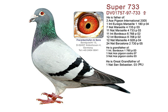福登霍芬父子是德国著名的赛鸽家族,由父亲海因茨-约瑟夫(Heinz-Josef),两个儿子德克(Dirk)和海科(Heiko)组成。德克从小与鸽子一起长大,上世纪八十年代末九十年代初他们决定征战巴塞罗那、波城、达克斯、马赛和波品纳为代表的国际赛。几十年来,福登霍芬从早期参加短距离、中距离,一直到后来参加长距离比赛,他们的成绩总能保持国际国家大赛冠军和前十名以内,福登霍芬家族绝对是全能鸽系强豪鸽舍。在2013年夺取波城、波尔多、巴塞罗那全国冠军,2014年又获得波品纳全国冠军、波尔多一岁鸽组国际亚军、季军。2015年赢得超长距离金鸽奖头衔。 福登霍芬父子之所以能创造如此惊人的成绩,来自其认真的管理和不断地引进超级种鸽优化种系。他们的主要鸽系来自于西蒙父子、萨亚兄弟和伊方.保罗。 1991年他们从西蒙斯那里买进了一些鸽蛋和幼鸽,正是这些引进成为如今福登霍芬鸽舍的基础。其中对福登霍芬父子影响最深的是从比利时著名养鸽名家亚伯.西蒙手里引进的一羽雄鸽“超级733”。“733号”成为福登霍芬家一羽当家种鸽,其体内含有优良的长距离万德维根血统,同时也是福登霍芬父子鸽舍里的超级种鸽。鸽王733下代赢得了很多国家赛和国际赛的冠军和前十名,包括1999年达克斯国际冠军、2001年长距离鸽王冠军、2002年EUREGIO国际赛冠军、2003年波而多国际赛冠军、2004年EUREGIO马赛国际赛冠军、2005年国际鸽王亚军、2007年国家赛雄鸽组鸽王冠军、2007年艾朗国家赛冠军、2008年国家赛长距离五关总冠军、2009年奥林匹克长距离鸽王冠军,2009年波尔多国家赛冠军、国际14780羽29名,2009巴塞罗那国家赛冠军、巴塞罗那国际赛27627羽29名,2009年陕西雁翔公棚决赛2352羽冠军、团体6名,2010年波品那国家赛冠军、国际15857羽6名,2012年波城8399羽国际冠军,2013年波城国家赛冠军,2013年波尔多国家赛冠军,一岁鸽冠军,2013年巴塞罗那国家赛冠军,国际25383羽13名。 “鸽王733” 此后他们还曾经从荷兰马斯特里赫特(Maastricht)的沙雅兄弟(Saya)和比利时吉斯贝特(Geetsbets)的依斯.范德波尔-巴克利(YvesVandedePoel-Buckley)那里引援。福登霍芬鸽舍的原则就是:只从最伟大的冠军那里引进鸽子。‘’ 福登霍芬父子鸽舍 这里就不得不提到福登霍芬父子的超级种鸽“阿甘”,它也是阿尔登霍温鸽舍内众多种鸽的鼻祖,其后裔夺取多个长距离全国冠军。“阿甘”王朝在波尔多/阿让赛事中可以说笑傲风云,它们辉煌的战绩实在令人印象深刻。 阿甘(ForrestGump),雄,环号DV06348-00-789,是德国长距离实战名家福登霍芬父子鸽舍的全能赛鸽,本身获得01年马赛725羽国家赛冠军、02年马赛国家赛552羽冠军、02年波品纳国家赛434羽冠军、02年国际鸽王季军。 它的儿子“阿甘直子”(06348-05-420)得波便是获城国际赛冠军“年轻福瑞斯特”(06348-10-196)的爸爸。 “年轻福瑞斯特”的配偶是来自威南德父子原舍雌鸽“波萨多姐妹”(SisterPozzato)(NL06-1437042),这羽雌鸽作育的后代在2009年获得波尔多全国1451羽冠军。 在它的后代中,有一羽孙代极为亮眼,这就是“小阿甘”,“小阿甘”获得了2012年波城国际冠军、波尔多全国季军(仅落后2羽同舍鸽)。迪克·福登霍芬对“小阿甘”有着前瞻性的判定,他深信这羽超级赛雄在育种品质上与“阿甘”一脉相承,是“阿甘”极为优秀的继任者。而2014年阿让国家赛中,前3羽打钟的赛将就是源自于“小阿甘”,这很好地为“小阿甘”育种品质作了注解! “小阿甘”后代赛绩: 2014年阿让(860公里)全国1,347羽亚军(“小阿甘”直女) 2014年阿让(860公里)全国1,347羽季军(“小阿甘”外孙女) 2014年阿让(860公里)全国1,347羽12位(“小阿甘”孙代) 阿让全国亚军鸽,环号为DV06348-13-207的“小阿甘皇后”的母亲是威南父子品系(theWijnands)的优秀种母“柏拉图全姐妹”(SisterPozzato)。“柏拉图全姐妹”是威南父子原舍鸽,作出的其他子代还获得了2013年波城全国冠军、2009年波尔多全国冠军、2010年波尔多全国820羽9位、2010年马赛全国21位、2012年波尔多全国22位。 波尔多/阿让全国季军鸽,环号为DV06348-13-364的“小阿甘外孙女”(GranddaughterForrestJunior)。它的父亲是“黑斑西蒙直子”(sonto'DonkereSimons'),母亲是“小阿甘”的一羽直女。它的祖父与2013年波尔多/阿让震撼赛将“多合一”(AllInOne)的祖父是相同的,都是“黑斑西蒙”。“多合一”获得了2013年波尔多全国1226羽冠军。而“黑斑西蒙”作出的子代还获得了:2010年波品纳全国冠军、2005年马赛全国大区冠军、2007年波品纳全国亚军及全国大区冠军等。 2016年波品纳德国全国冠军-"成鸽组"冠军,也是阿甘的血统鸽,翔距957.841km,创下平均分速1190.6米/分。 显而易见,福登霍芬父子知道如何作育天赋鸽,这对他们在超长距离比赛中取得成功发挥着重要的作用。如果你有一羽赛鸽拥有“阿甘号”或者他的幼鸽和孙代这样的天赋,你的未来就非常值得期待! 本次南京德国信鸽博览会上,德克·福登霍芬将会带着他的鸽子出现在现场,包括他的王牌鸽“733”和“阿甘”的后代!