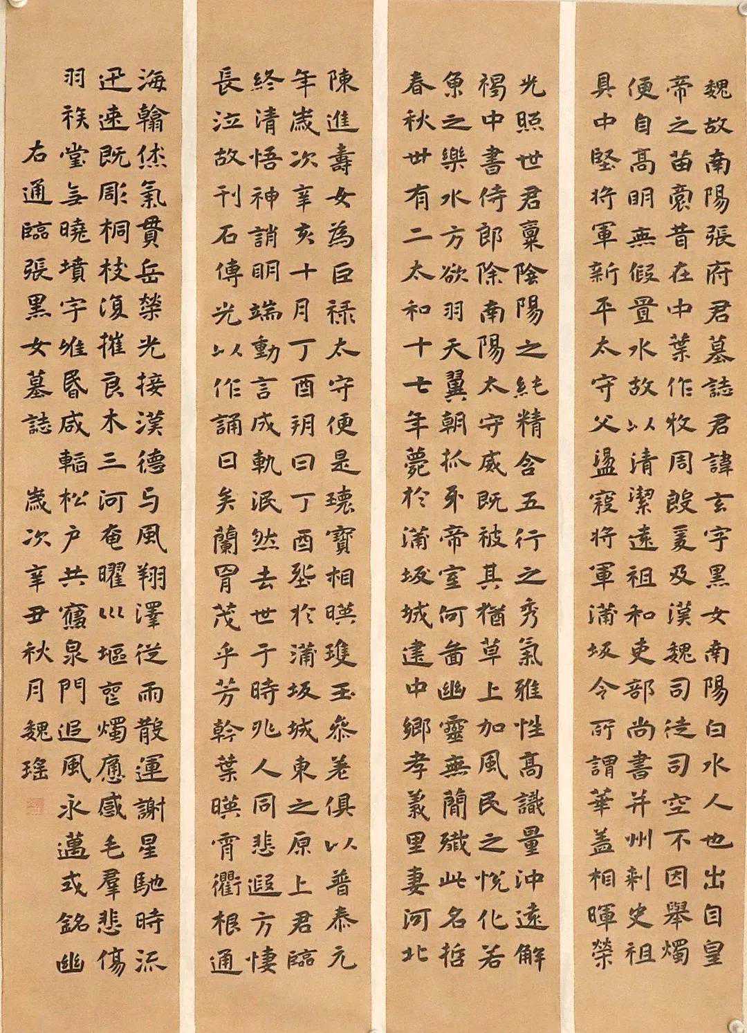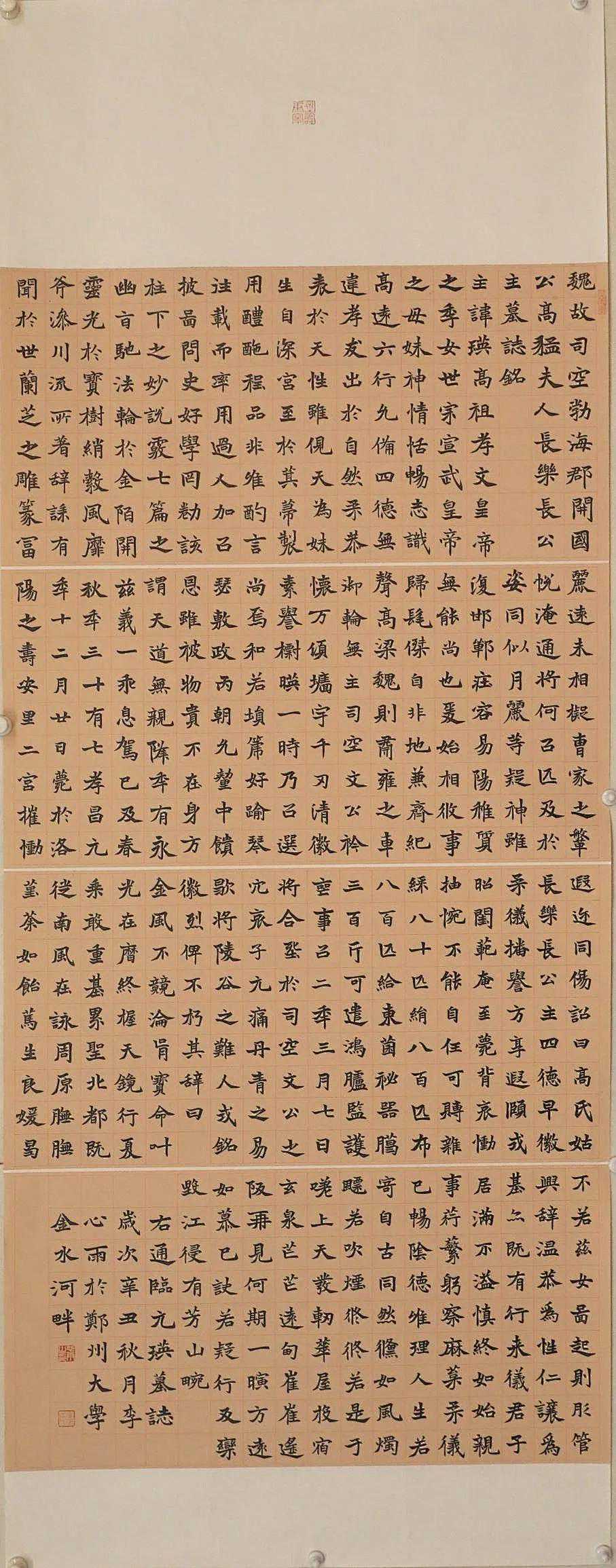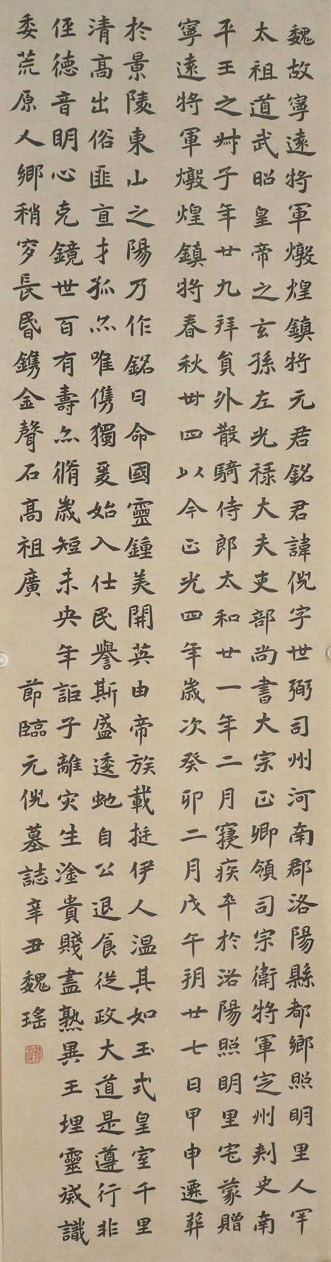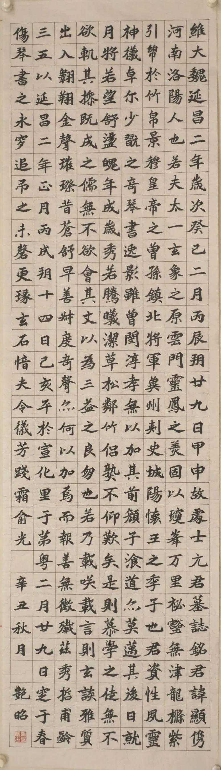 前言 康有为在《广艺舟双楫》中说魏碑有十美:“一曰魄力雄强,二曰气象浑穆,三曰笔法跳跃,四曰点画俊厚,五曰意态奇异,六曰精神飞动,七曰兴趣酣足,八曰骨法洞达,九曰结构天成,十曰骨肉丰美。” 魏碑楷书,点画峻厚,结体严谨方正,意态奇逸,雄伟峻拔,苍劲雄强,铁骨铮铮。如北方男人,粗犷而酣畅,有血性的阳刚之美。如《张猛龙》的刚强,《张黑女》的英武,《龙门二十品》的厚重苍劲,都是其中的佼佼者。 以下是20级3班同学的临摹作品,还请各位老师、同学多多指正。 ——晨曦记于古商城 教师简介 闫继翔 闫继翔,首师大书法博士、清华大学艺术理论博士后、中国书法家协会会员。先后在《中国书法》《美术观察》《书法》等期刊发表书学理论文章近30篇,出版个人专著《近现代中国画大家·陈半丁》(高等教育出版社2018),《撕裂的两极——祝允明的人生与书法》(台湾花木兰出版社2018)两部,论文多次入选中国书协举办书学讨论会。书法作品参加各种展览,被多家馆藏机构收藏。主持、参与省部级课题多项。 03 结课研讨 04 学生作品 胡曼玥 魏碑犹如一片沃土,面目各异,取法宽博,拓展了形式塑造空间。但也应看到,碑刻更多地体现了刀刻特征。如何用软毫毛笔表现刀刻语言,启功先生在其论诗绝句中一语道破天机:“学书别有观碑法,透过刀锋看笔锋。”所以在创作时,强化了书写意趣。 此次魏碑临摹课程我选择了《穆玉容墓志》,与同时期的墓志相比,该墓志刻工精良,手法娴熟,把书者的意图、笔势、牵丝、顾盼、承启表现的淋漓尽致。魏碑临摹课程虽已结束,但在以后的学习中,我也会不断的探索与学习魏碑。 石婉新 在闫继翔老师的指导下,我们线上与线下课程相结合,学习了北魏时期多种类型、不同风格的墓志。我比较喜爱精美一路的元氏墓志,北魏墓志中大量的元氏墓主,实际上都是北魏的皇室成员,由于王公贵族的身份地位和财力物力,使这些墓穴建造得十分考究,里面的墓志书法也与同时期的造像记书法风格有一定的差异,特别是书写和镌刻的精致性,较为充分地体现了毛笔的趣味与特性,远非缺少文化的下层人士所能书写。正是这样,这些墓志书法或更接近北魏时期贵族与文士的实际书法面貌,体现了较高的书写技术和审美水平。 我所临摹的《元珽妻穆玉容墓志铭》立于北魏神龟二年,墓文共二十行,每行二十字,此墓志结字匀整,笔画精到,以方笔为主,夹杂圆笔,体势略扁,方平正中寓险绝之态,刚强中显温婉之姿,开唐楷先声。 李心雨 康有为在《广艺舟双楫》中称魏碑:“飞逸奇浑,分行疏宕,飘飘欲仙,若瑶岛散仙,骖鹤跨鸾。”此次课程,我选择临习《元瑛墓志》作为魏碑入门。通观全碑,承汉隶之余韵,启唐楷之先声,予人骨势峻迈的独特气息,又于清秀隽永中显露出洒脱爽朗之态。课程期间,闫老师也着重强调魏碑的书写性,要求我们注重收放、对比以及作品的整体意识,收获颇多,感谢老师的辛勤指导。 赵柳 魏碑作为楷书的一种,散发着她独特的魅力,魏碑书体是在汉隶基础上逐渐演变而成的。本次课程,我选择了《元倪墓志》作为我的主要课程,在学习中,我感受到了《元倪墓志》用笔果断刚劲,没有太多的多余动作,并且姿态多变,利落干脆,给我一种清新遒美的畅快感。在今后我也会多加练习,不断尝试其他的魏碑,使自己更上一层楼。 任培之 魏碑不同于唐楷,没有过于森严的法度,字的造型千变万化趣味横生。在结构上看,唐楷都是很正的感觉,一般称之为平画宽结,而魏碑是斜画紧结,不管是横画还是竖画他都有一种斜的势。从而体现出比较粗犷,自由活泼的美感,线条上内部的提按没有唐楷明显。在学习魏碑的过程中,我也遇到了许许多多的困难,在老师和同学们的帮助和交流下,课后耐心逐一攻克。课程虽短,魏碑学习是一生的长跑,今后还需在结合理论与技法的同时大胆尝试。 栾梦圆 在没接触魏碑之前就对魏碑有着满满好奇感,羡慕魏碑的神气,更感觉结构处理的微妙有趣。在闫老师的指导下我选择《李璧墓志》跟《石门铭》进行临摹。 张睿雅 北魏《元桢墓志》风格苍厚爽利不失古意,点画多为三角形,偶有圆形出现;结体取势左右开张,整体字形多取斜势,跌宕多姿,是魏碑“平城时期”风格向“洛阳时期”风格过渡的典型代表。通过字形的撇捺舒张,钩挑穿插,呈现出跌宕起伏的布局。《元桢墓志》以其独具风貌之特色,开了隋唐楷书之先河,历来受到重视。 文靖博 魏碑上承汉隶传统,下启唐楷新风,其风格多样,朴拙险峻。在五周的魏碑学习中,闫老师带领我们学习解决魏碑笔法、字内空间疏密变化、字形大小对比、线质等问题。我在学习中,主要临习《元桢墓志》和《石门铭》。《元桢墓志》其笔画茂实刚劲,结体紧峻,临习时注意字内空间变化和笔画粗细对比;《石门铭》则舒展自然,字势飞动,临习时注意字的收放关系和体势变化。课程虽然结束,但仍有很多欠缺,在以后学习的路上,我将继续努力,不断进步。 王启月 本次魏碑临摹课程,我选择临习《李璧墓志》,临习此碑重在理解其特性。首先,用笔雄强多变。此碑用笔斩钉截铁写“横”多为“竖”下笔,写“竖”多为要“横”下笔,落笔切翻,收笔多变,线条的“斧凿之迹”表现明显。《李璧墓志》用笔虽主要为“方”,但也辅以圆笔的运用,须认真体会。其次,结体因字立形。《李璧