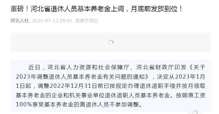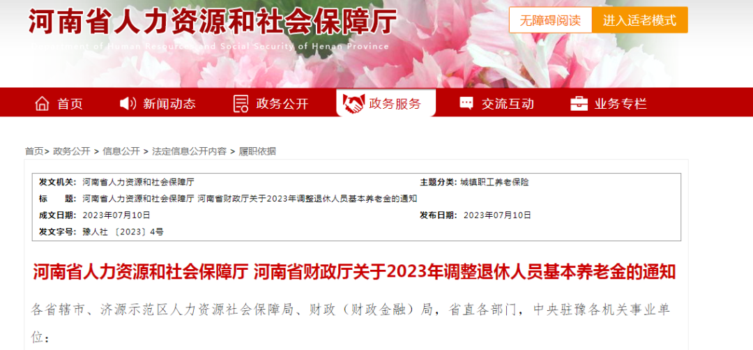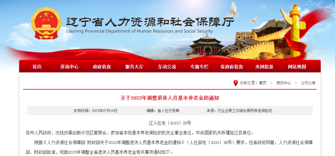 进入7月以来,全国多地陆续发布了2023年养老金调整方案,兑现养老金的上涨。你的养老金今年涨了多少? 北京 14日,北京市人力资源和社会保障局、北京市财政局发布《关于2023年调整本市退休人员基本养老金的通知》。 北京市职工基本养老保险(含企业职工基本养老保险和机关事业单位基本养老保险)参保范围内,2022年12月31日前经批准已办理退休(含退职、退养人员,下同)手续的人员,自2023年1月1日起调整基本养老金。 本次调整办法如下: (一)每人每月增加36元。 (二)退休人员按缴费年限(含视同缴费年限,不含折算工龄,下同)调整基本养老金。缴费年限满10年及以上的退休人员,缴费年限每满1年,每月增加3元,对于不足整年的月数,每月增加0.25元;缴费年限不满10年的退休人员(不含建设征地农转工退休人员),每人每月增加30元;缴费年限不满15年的建设征地农转工退休人员,每人每月增加45元。 (三)退休人员按下列绝对额调整基本养老金:按本通知规定调整基本养老金前,月基本养老金在6451元及以下的,每人每月增加50元;月基本养老金在6451元以上的,每人每月增加35元。 其中,调整前月基本养老金在6451元以上的,按绝对额增加35元后(不含按本条第(一)款、第(二)款增加的调整金额),低于6501(6451+50)元的,补足到6501元。 (四)企业退休的军队转业干部、原工商业者按本条第(一)款、第(二)款、第(三)款规定调整基本养老金后,低于调整后本市企业退休人员人均基本养老金水平的,补足到平均水平。 (五)企业退休的建国前参加革命工作,按原劳动人事部《关于建国前参加工作的老工人退休待遇的通知》(劳人险〔1983〕3号)规定,享受原标准工资100%退休费的老工人,1937年7月7日至1945年9月2日参加革命工作的,每人每月增加335元;1945年9月3日至1949年9月30日参加革命工作的,每人每月增加305元。 (六)在按照上述规定增加基本养老金的基础上,2022年12月31日(含)前年满65周岁及以上的退休人员,再按照下列标准增加基本养老金: 年满65周岁不满70周岁的,每人每月增加30元;年满70周岁不满75周岁的,每人每月增加50元;年满75周岁不满80周岁的,每人每月增加60元;年满80周岁及以上的,每人每月增加70元。 缴费年限30年及以上的人员,每人每月增加5元。 (七)企业退休的建国前参加革命工作,享受原标准工资100%退休费的老工人,按照本条第(五)款、第(六)款规定增加的基本养老金,作为每年增发两至三个半月生活补助费的基数。其增加部分自本通知执行之月起,一次性全额发给。 宁夏 7日,宁夏回族自治区人力资源和社会保障厅、宁夏回族自治区财政厅联合印发《关于2023年调整退休人员基本养老金的通知》。 本次调整分为定额调整、挂钩调整、适当倾斜三部分。 定额调整:每人每月增加60元。 挂钩调整:一是与本人缴费年限(含视同缴费年限)挂钩,缴费年限在15年以内的(含15年),每月统一调整15元,缴费年限在15年以上的(不满1年按1年计算),自第16年起,每满1年每月再增加2元;对因工伤残已办理退休手续并领取基本养老金的人员(不含因企业破产办理退休的5-6级工伤人员),缴费年限不满30年的按30年计算。二是与本人养老金水平挂钩,按本人2022年12月基本养老金的0.95%调整(四舍五入保留两位小数),调整不足20元的统一按20元调整,工伤退休职工按原规定执行。 适当倾斜:一是高龄人员在定额和挂钩调整的基础上,再对年满70周岁以上人员适当倾斜,即:年满70周岁不满75周岁的每人每月再增加基本养老金10元,年满75周岁不满80周岁的每人每月再增加基本养老金15元,年满80周岁以上的每人每月再增加基本养老金20元;二是在定额和挂钩调整的基础上,对艰苦边远一类区的每人每月再增加基本养老金10元,对艰苦边远三类区的每人每月再增加基本养老金15元;三是企业退休军转干部调整后基本养老金水平低于自治区企业退休人员基本养老金平均水平的,补齐到自治区企业退休人员基本养老金平均水平。 辽宁 7日,辽宁省人力资源和社会保障厅发布《关于2023年调整退休人员基本养老金的通知》。 本次的调整办法和标准如下: 定额调整:退休(职)人员、“五七家属工”每人每月增加基本养老金35元。 挂钩调整: 退休(职)人员符合国家、省规定的缴费年限(含视同缴费年限,不含特殊工种等折算年限,下同)每满1年(不足1年按1年计算,下同),每人每月增加基本养老金1元,其中缴费年限超过15年的部分,每满1年,每人每月再增加基本养老金1.5元。 退休(职)人员、“五七家属工”按照本人2022年12月领取的统筹项目内月基本养老金(以下简称统筹内养老金)为基数,按0.7%的比例增加基本养老金。 倾斜调整: 在定额调整和挂钩调整基础上,符合下列条件的人员,分别再按下列规定增加基本养老金: 2022年12月31日前,年满70周岁(含70周岁)、不满80周岁的退休(职)人员、“五七家属工”,每人每月再增加35元;年满80周岁以上(含80周岁)的人员,每人每月再增加70元。 符合《关于印发〈完善艰苦边远地区津贴制度实施方案〉的通知》(国人部发〔2006〕61号)规定范围内的艰苦边远地区退休人员,每人每月再增加5元。 企业退休军转干部增加基本养老金,在和其他条件相同的退休人员同办法、同标准调整后,统筹内养老金总额低于调整后全省企业退休人员人均统筹内养老金水平的,补足到该水平。 河南 10日,河南省人力资源和社会保障厅、河南省财政厅发