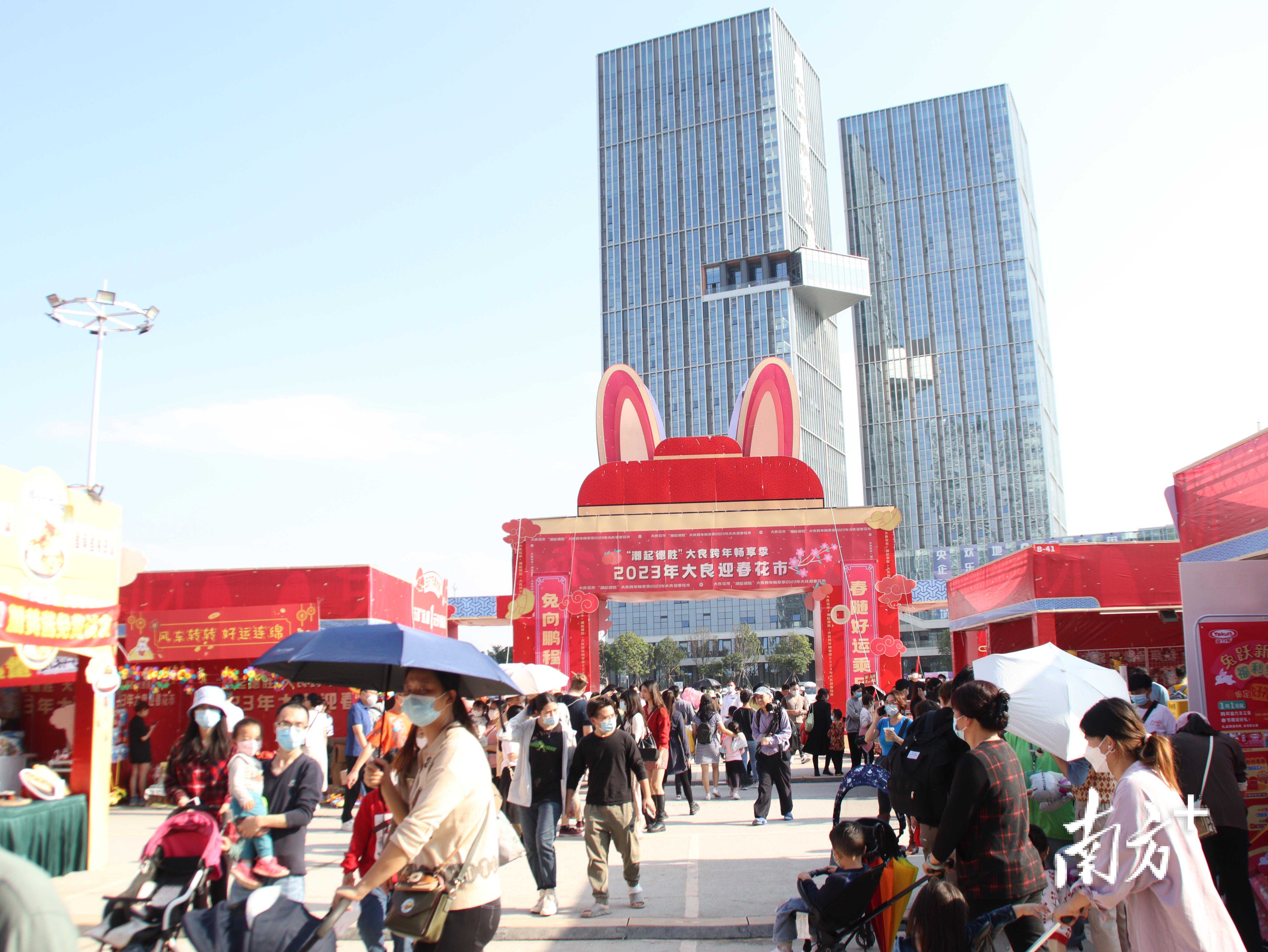“行过花街才是年”,1月14日,“潮起德胜”大良跨年畅享季之2023年大良迎春花市在欢乐海岸PLUS绿地停车场正式开启,一连8天,品年味。 阔别三年,新貌换旧颜,今年的大良花市不仅能迎接佛山地铁3号线带来的远方的客人,还融入兴业、乐购、畅游三大主题,多层次、多角度,重拾顺德市民心中那份过年仪式感。 1月14日,“潮起德胜”大良跨年畅享季2023年大良迎春花市阔别三年后开启。 “非常热闹,逛得很满足!”怀里抱着刚刚挑到的年花,市民李先生高兴地说,恰逢周末,他带着一家老小,乘着地铁从大良中区来到了欢乐海岸,“地铁很方便,还不用考虑停车问题。” 市民抱着年花挑选春联。 市民行走在年花之间。 走进花市,便能看到蝴蝶兰、吉利红、郁金香、桃花等年花种类繁多;对联、窗花、红包、挂饰等更显喜庆;各种特色美食、小吃香气四溢,人们边逛边追寻美味,还能观看醒狮旺场、财神巡游、名家挥春。 花市隔壁便是美食一条街。 美食摊位人气高。 今年大良花市共设置了140余个花市摊位,从吃喝玩购全面覆盖消费需求。其中,百货及温室植物62个摊位,桃花、盆花、盆桔共39个,还开设了34个美食摊位。 “现场还有很多特色的文创潮品摊位,能吸引年轻人们过来打卡。”顺德欢乐海岸商业运营公司副总经理赛斐介绍道,“今年的花市够年味、够潮流、够好玩、够方便。”在华侨城欢乐海岸PLUS举办花市,让传统年味与现代潮流交流、碰撞,老少皆宜的大良花市欢迎人们前来品玩。 年轻人也来花市打卡。 值得一提的是,欢乐海岸PLUS也将推出春节系列活动,例如人们期待已久的烟花秀,将从大年初一至大年初五,连放5天,“我们还准备了民俗、年俗表演,包括潮汕普宁英歌舞、中山嘴龙、广府飘色巡游、水上飞狮、打铁花演出等。”赛斐介绍,旨在为顺德市民们呈现一场红红火火、年味十足的新年庆典。 行至街心,档主们热情招揽着市民,“生意很好!”第一年参加大良花市的档主陈先生,正忙着给顾客包装年花,汗水浸湿了他的衣服和口罩,“现场氛围特别好,来买花的市民也很多。” 而开市第一天,现场人流量较大,为确保迎春花市顺利、安全、有序举行,大良街道办事处组织公安、交警、执法、消防、市监等职能部门,对花市的安保、交通疏导、保洁卫生及食品安全等方面展开相应监督、管控和指导工作,并协调做好公共配套后勤保障工作,“初步预估每天的客流量在3000左右,我们也对此做好了相应的准备。”大良街道综合执法办主任李尚春说,要全力做好保障工作,让市民更舒适的“行花街”。 【撰文】李欣张艳青