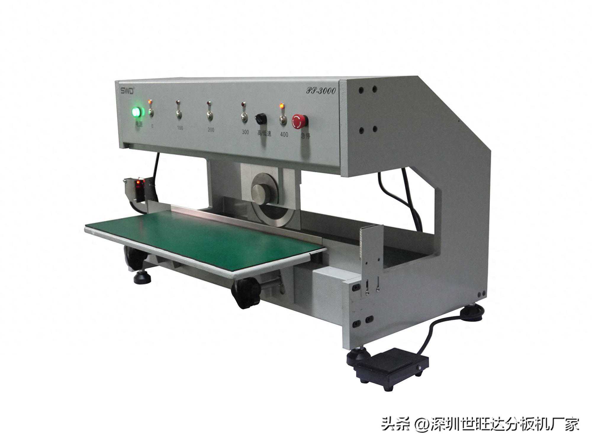 什么是PCB分板机?分板机是一种分PCB拼板的分板设备,是电子生产厂家必备的一种电子设备,因为PCB分板机是通过刀片的运动来进行PCB拼板的切割,能更有效的控制住分板时产生的应力,可以预防元器件的损坏,移位,比人工及剪钳的分板,能有更大的品质保障,走刀式PCB分板机的特点: 1.走刀式分板机采用上圆刀下平刀方式,PC板至于下平刀上,开关一踩,上圆刀横移至所设定的定点,即将PC板切断分割,切断不脱丝,切口平整; 2.以上圆刀走刀式行进分割,可彻底减少应力,防止焊点龟裂及零件断裂; 3.连接多片的PC板于焊锡后,折断时常会伤害线路,或将电子零件折断,使用本机可避免损伤,并可提高工作效率及质量; 4.机器使用步进马达驱动,通电即可自锁,精确定位。解决了直流,交流马达在工作中因为惯性的原因工作一段时间后改变行程点的问题; 5.走刀式分板机采用红外线光幕开关安全保护,当手或者异物在刀运动区域内机器立刻停止工作,确保机器高速,安全运行; 6.切板速度可设定高低两种。高速可达200mm/s,走刀行程可随PC板长度随意设定前进停止定点; 7.机台上端的下部配置有日光灯,以防在阴影环境下操场时的工作误差; 8.走刀式分板机上、下刀为进口高速钢材料耐用无比,可反复研磨。可根据客户要求安装原装CAB刀片。 在一些中小型PCB加工厂会采用手工分板的方式,但容易损坏PCBA板,使用分板机设备进行分板更加安全可靠。