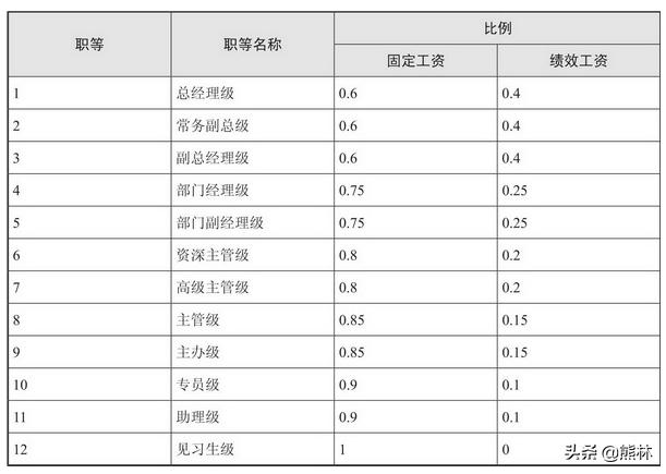 一个公司是否必须有薪酬体系,才能发放工资?对于这个问题,一般的教科书总是说先有薪酬体系,后有工资发放。而在现实中,中小企业、小微企业一定会有工资发放,但不一定有薪酬体系。常见情形是通过谈工资来定薪,告诉HR按这个薪资数据做工资表。另外一种情形是:老板直接谈定薪;用人部门与员工商谈,然后找老板定薪;招聘主管或HR经理与员工商谈,然后找老板定薪。 谈工资的规则一:随行就市(对外,行业和地区);规则二:同类岗位比较(对内)。做得粗的,老板拍脑袋直接作决定;做得细的,先由HR提供同类岗位的薪资数据,再在一个相对合理的范围内取一个数值。 这种谈工资的方法,虽然不成体系,但照样能够做成工资表,形成工资条。但时间长了,公司规模大了,弊病就产生了。由于无法做到真正的工资保密,员工私底下互相比较后,会产生各种不公平感,导致内耗和抱怨加剧。往往到了矛盾积累严重、部门发生冲突时,老板才会觉得恼火,才会让HR或借助咨询公司,设计、优化公司薪酬体系。 现在,假定你所在的公司已发展到一定程度,老板提出要设计薪酬体系;或者老板有先见之明,虽然公司规模不大,但考虑提前建立薪酬体系。 说到薪酬体系,你马上会想到什么呢?我想应该是一张表,或者叫矩阵。 薪酬体系应建立在职位体系的基础上。薪酬体系一般也会涉及“固定部分+浮动部分”(也有例外,就是只有固定部分),而浮动部分往往要与绩效考核结果挂钩。所以薪酬体系的建立,一般总是会涉及“职位—薪酬—绩效”,它们的英文名称第一个字母都是“P”,这就是“3P理论”的由来。 关于薪酬体系,教科书会提出三个原则:对外的竞争性,对内的公平性,合法性。对于合法性,2008年新劳动法实施前,企业在实际操作时不太重视,新劳动法实施后,加上创业板、中小板的推出,很多拟上市公司就不得不重视合法性了。对外的竞争性,通常与薪资调查联系在一起,主要针对行业、地区,以确定本公司的薪酬曲线以及与市场的差异。对内的公平性,涉及纵向的职位层级的比较,以及横向的不同部门(职位族)的比较。 在此,我们引出薪酬体系的核心:职等职级表。也有公司叫薪等薪级表,两者略有区别,这种差别主要体现在福利、补贴等的享受方面。 职等职级表的背后,隐藏着该公司的薪酬曲线,体现了公司的薪资政策,同时提供了构建表格的数据基础。 职等职级表常用于纵向、横向的内部比较,薪酬曲线还可用于外部收入水平的比较。 表格中的数值用于测算。如月薪3000元,这就是最常见的职能工资制或岗位工资制;或薪点3.0(规定1分=1000元),这就是常见的薪点制。 除此以外,还需要对薪资的结构(科目)、比例(固定和浮动,包括基本工资、绩效工资、各类奖金、年终奖),与薪资关联的福利、补贴等,薪资日常发放的流程,以及平时调薪、年度调薪等作规定,并通过一定的合法程序如职代会等形成薪酬制度。薪酬体系的最终结果是形成公司现阶段的薪酬制度。 我们先看一个职等表,见表。表中有12个职等、5个职位族、两大序列。在此表的基础上,根据本公司的实际情况,比如规模、行业等,设置合适的职等、职等名称、职位族类别,并组织讨论。 每个职等需设置职级(薪级),见表。本表有11个薪级,灰色部分为每职等的起薪档、中间档、最高档。在此表的基础上,考虑人员规模,可以组织讨论:本公司设置多少薪级合适? 现在需要建一个Excel薪等薪级表,假定每等分15薪级,见表。录入、调试数据后,观察薪酬曲线是否合适,见图。 薪酬曲线的高度、平滑度、陡度,是通过等差、级差来控制的。等差=上一职等的中间档-下一职等的中间档;级差=同一职等的上个薪级-同一职等的下个薪级;倍率=上一职等的中间档/下一职等的中间档。 表中,11等1级对应系数1.0,最先设置;11等2级的系数=1.0+0.06(11等的级差),在Excel中右拉,就可以得到11等的所有薪级系数。10等1级的系数=1.0+0.42(对应的等差),在Excel中右拉,就可以得到10等的所有薪级系数。其他职等操作类同。 薪等薪级表数据 薪点表设置完整后,在Excel中画出折线图,就可以观察薪酬曲线的平滑度、陡度。这个需要多次讨论、调试。总体来说,要控制好纵向职位层级之间的差距的合理性。HR要做的基础工作,就是设置Excel表的公式、链接,当录入、修改数据后,曲线将随之发生变化,再观察调试。 薪酬曲线 薪酬曲线的系数都是相对值,用以解决内部的公平性问题。至于薪资水平,就要根据“1分=多少元”进行测算。在这个过程中,需要结合公司现有薪资水平及外部薪资水平(本行业、本地区),组织全员讨论。下面假设1分=2000元,得到每职等薪级对应的薪资数据,见表。 薪资比例 接下来,需要确定不同职等的薪资比例,见表。在这个过程中,也需要组织全员讨论。 为方便阅读,我们依据薪酬制度,经讨论确定,得到表。 1分=2000元的测算 薪资比例 薪资比例(简化后) 接下来,需要设计薪资结构,也就是设计组成薪资的工资科目,见表。 差异系数的考虑 假定本公司有多个工厂或子公司,分布在不同地区,且各地的薪资水平有差别,那么就要考虑设置地区差异系数,使公司薪酬体系尽量统一。但同样的薪点,对应的薪资数据是不同的。 薪资组成---工薪科目的设计 年度调薪 在进行薪酬体系设计时,还需要考虑年度调薪。可参考两个调薪矩阵,见表。 调薪矩阵1 调薪矩阵2