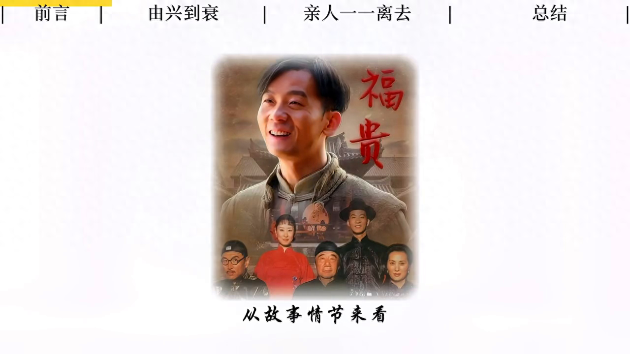 由兴到衰,亲人一一离去。 人生虽苦,但人间值得。五分钟读一本书,今天读《活着》。《活着》的文字太过自然,太过流畅,在无需刻意渲染的气氛下,读者就能够清晰地看到一个人的离去,那种平静而悲哀的场景。 从故事情节来看,福贵的一生可以被视为彻头彻尾的悲剧。年少时的他仗着家有良田百亩,又是独苗,他挥霍家产,浪荡不羁。因为母亲的溺爱,妻子家珍屡劝无果,父亲生怕断子绝孙,也拿他没办法。最后他在龙二的设计下,一夜之间输光了家里所有的家产,导致父亲离世。 之后他虽试图"改邪归正",但生活却接连给他带来意外打击。他被强行抓壮丁,经历了沙场的炮火连天,生离死别。当他回到家时,母亲也已经辞世,只有妻子家珍独自带着两个孩子艰难生活。女儿凤霞因高烧变成了聋哑,三岁的儿子有庆也不认识他。 没过多久,妻子家珍突然患上了软骨病,儿子有庆在给县长夫人献血时血被抽干而死。女儿凤霞的命运更是坎坷,她好不容易嫁给了二喜,却因生产时大出血撒手人寰。凤霞死后的不到三个月,饱受命运摧残和病痛折磨的妻子家珍也死了。从此福贵、二喜和苦根祖孙三代便相依为命。 四年后二喜干活时被水泥板夹死,福贵便独自带着外孙苦根生活。他常说有了苦根,人活着就有尽头,但命运并没有放过他。最后生病的苦根却因为难得吃到一次豆子被活活撑死了。苦根死后的第二年,富贵用攒下的钱买了一头即将被宰的老牛,并起名为富贵。 总的来说他的一生就像是一幅斑驳不堪的生活画卷,每当一缕遥远的曙光洒在生活的表面,微弱的光芒很快就会被遮天蔽日的阴云所淹没,最终他孑然一身。福贵的人生就像一部生活的缩影,充满了惊变和悲哀,但这就是生活,这就是活着。 《活着》写的是一个从午后至黄昏的时间跨度,也是写福贵一生的悲欢离合与颠沛流离。它并不像一部悲剧,故事的最后与开头的场景渐渐相融,它与序言中那首《老黑奴》相互呼应。福贵经历了一生的苦难,家人都离他而去,但他依然友好地对待这个世界,没有一句抱怨的话。 作者在自序中写道:我知道福贵的一生窄如手掌,但这窄如手掌的一生是否宽若大地?这是一部生命的赞歌,它不仅仅是一个人的悲哀,更是一种对生命的思考与敬仰。这部作品所展现的正是生命本身,而我们或许只是其中朝生暮死的微小生物,尽管经历了一切苦难也要竭力豁达平和地活着。这就是《活着》的主题,也是我们每个人应该思考的问题。