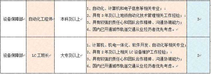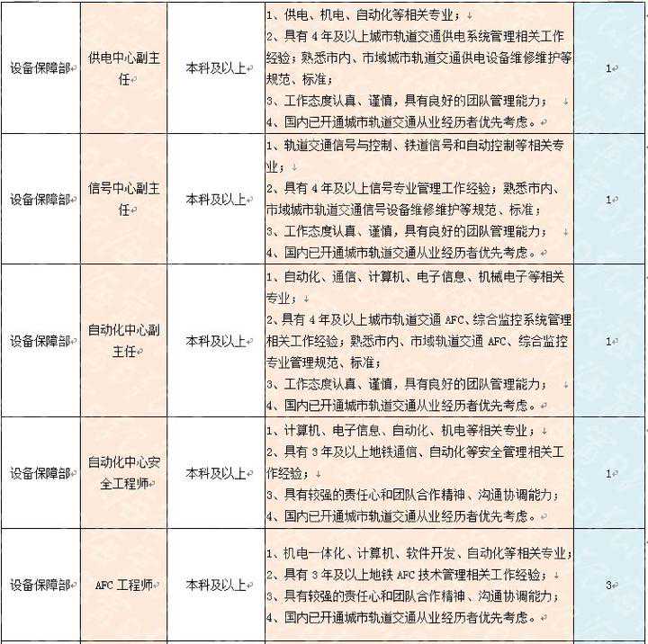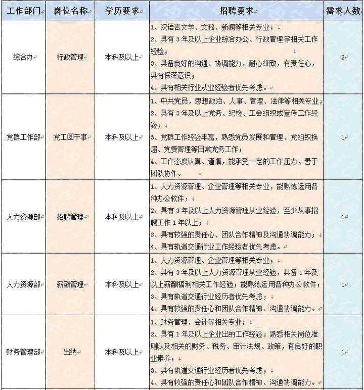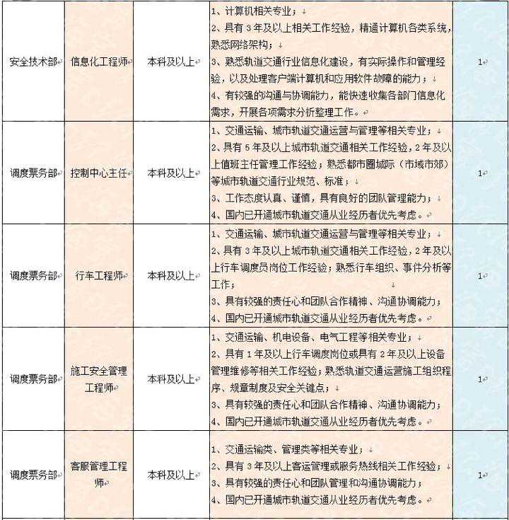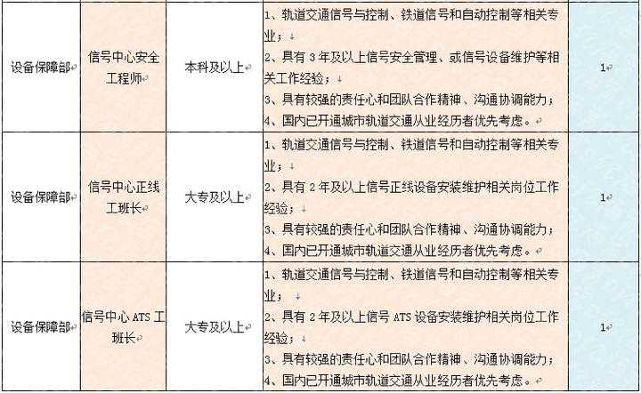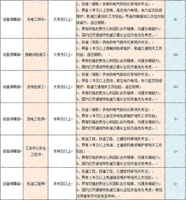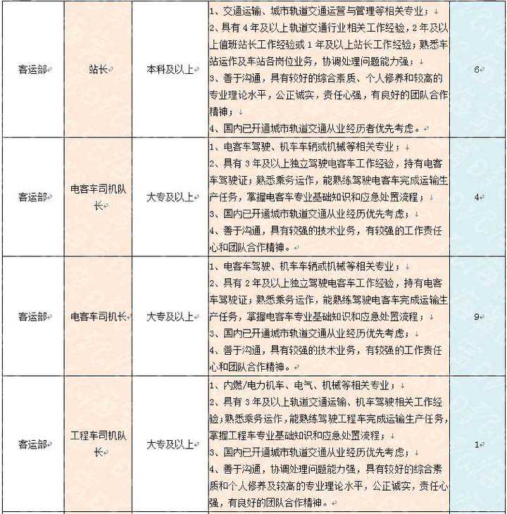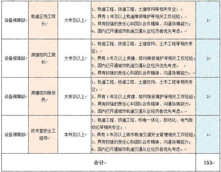 2019-04-1111:21|微信公众号 杭海城铁招人啦! 今天一上班 报姐就收到了这个好消息 迫不及待告诉大家 ▽ 据浙江省交通投资集团有限公司官网消息 64个岗位 共招153人 心动吗?! 想不想去城铁工作 感觉超洋气的! 好了,赶紧看看有哪些岗位 你符合条件吗? 浙江省轨道交通运营管理集团 海宁分公司招聘公告 浙江省轨道交通运营管理集团有限公司海宁分公司成立于2018年7月,是浙江省轨道交通运营管理集团有限公司下属分公司,为杭州到海宁城际铁路提供专业高效的运营管理和服务,分公司目前处于运营筹备阶段。 现因业务发展需要,面向集团内外公开招聘优秀人才,诚挚欢迎有志之士积极应聘,现将有关事项公告如下: 招聘岗位 本次省轨道运营集团海宁分公司招聘岗位64个,人员共计153人。目前工作地点海宁市区,正式开通运营后办公地点在盐官车辆段。详细招聘需求计划如下: 招聘人员基本条件 1、思想政治素养好,遵纪守法,品行端正; 2、具有较强的事业心和责任感,综合素质高,工作能力强,敢担当善作为; 3、具备履行岗位职责的专业知识; 4、具备适应岗位要求的身体条件; 5、同等条件下,海宁籍优先考虑。 招聘流程 1、报名 生产技术岗位报名长期有效,招满为止。 >报名方式:本次招聘只接受网上报名。应聘人员登陆“浙江省交通投资集团有限公司”官方网站()查看招聘公告和相关附件,登录报名管理信息系统(务必使用谷歌浏览器),按照招聘岗位要求在线投递简历,每人限报1个岗位。 >招聘咨询电话: 如网上报名出现问题,经电话确认后,请完整填写相应岗位的《报名登记表》(附件2),以电子邮件形式发送至邮箱:zjgdjtyygl@163.com 2、面试 对应聘人员应聘材料进行初步筛选后,以电话或电子邮件的方式通知入围人员参加面试的时间、地点。收到面试通知的人员请携带本人身份证、学历学位证书、技术职称证书、执业资格证书、市级及以上荣誉证书等证件原件参加面试。 面试主要对岗位所必备的综合知识、专业知识、业务能力、工作技能等综合素质和岗能匹配方面进行考察了解。对部分岗位根据报名情况考虑增设笔试环节。 3、体检 参照《公务员录用体检通用标准》,到指定医院进行体检。 4、录用 根据应聘者笔试、面试、体检、背景调查等综合情况,择优确定聘用对象,办理入职手续。 看清楚岗位了吗? 赶紧告诉有需要的人!