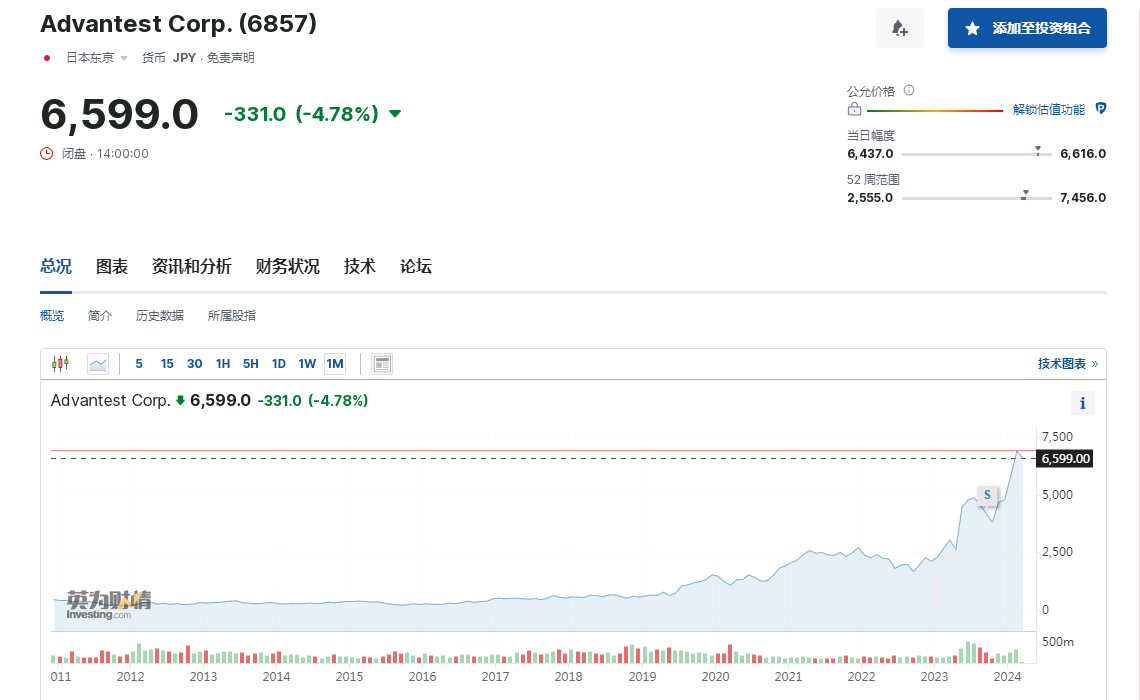 爱德万测试(AdvantestCorporation)在此前的日经推动排行中,一年涨幅遥遥领先于其他公司,但国内对于这家公司并不是非常熟悉,接下来,我们将为投资者着重介绍下这家公司。 AdvantestCorporation(爱德万测试株式会社)是一家总部位于日本东京的全球领先的半导体测试设备供应商。这家公司成立于1954年,历经半个多世纪的发展,在全球半导体测试行业中扮演了重要角色,特别是在大规模集成电路(LSI)自动测试设备及电子测量仪器的研发、制造、销售和服务方面具有显著优势。 爱德万测试的产品涵盖了半导体测试系统的各个方面,包括存储器测试系统、系统级芯片(SoC)测试系统以及其他先进的电子测量仪器,如频谱分析仪等。其客户群遍布世界各地,涉及消费电子、计算机、通信、汽车、航空航天等多个行业领域的半导体制造商。 作为半导体测试行业的领军企业之一,Advantest不断进行技术创新,以应对快速发展的半导体技术对测试精度和效率的需求增长。公司在全球范围内设立了多个子公司和服务中心,以便更贴近客户需求,提供及时、高效的服务和支持。 举例来说,U3751是一款由Advantest生产的高性能频谱分析仪,具备较高的频率范围和精准的测试能力,服务于广泛的射频和微波信号测试场景。 随着半导体行业的发展,特别是近年来人工智能、物联网等领域对芯片性能要求的提升,爱德万测试持续投入研发,以满足日益复杂的测试挑战。 U3751频谱分析仪 作为全球领先的半导体测试设备供应商,AdvantestCorporation(爱德万测试)主要服务对象包括各种大型半导体设计商、制造商和封测企业,这些企业在集成电路产业链中占据重要位置。以下是一些潜在的知名客户类别: 1.存储器制造商:比如三星(Samsung)、SK海力士(SKHynix)和美光科技(MicronTechnology)等,这类公司在DRAM和NAND闪存领域有着巨大的产能和研发投入,需要高质量的测试设备来保证产品质量。 2.集成电路设计公司和IDM(IntegratedDeviceManufacturer):如英特尔(Intel)、德州仪器(TexasInstruments)、高通(Qualcomm)、博通(Broadcom)等,它们在设计和生产各种类型的集成电路时,需要使用Advantest提供的测试解决方案来验证产品的功能和性能。 3.半导体代工厂:像台积电(TSMC)、格罗方德(GlobalFoundries)、联华电子(UMC)等,这些代工厂为全球众多无厂半导体设计公司提供制造服务,其生产线上的测试环节需要用到爱德万测试的设备。 4.封装和测试服务提供商(OSATs):例如日月光集团(ASEGroup)、安靠(AmkorTechnology)、长电科技(JCET)等,它们在完成封装之后需要对封装好的芯片进行全面的电气性能测试。 由于Advantest在全球半导体测试设备市场的领先地位,其客户基础广泛且多为行业领导者。但由于具体的商业合作关系细节通常不对外公开,以上列举的公司仅为潜在客户代表,并非确切的公开合作信息。 AdvantestCorporation(爱德万测试)为什么能有如此强的竞争力,主要原因也在于其强大的技术壁垒: 1.10纳米级电子束光刻设备F7000:这款设备展示了爱德万测试在精密微细加工领域的技术实力,其能在小批量生产中提供高分辨率和高吞吐量的光刻解决方案,这对于科研机构以及高级半导体研发至关重要。这意味着爱德万测试能够满足先进制程节点的复杂需求,而这种能力并非所有设备制造商都能达到。 F7000 太赫兹封装厚度检测技术:太赫兹波成像技术在无损检测和材料分析上有独特优势,爱德万测试开发的太赫兹光谱成像系统可应用于半导体封装的高精度厚度检测,这一技术填补了市场空白,构成了独特的技术壁垒。 大功率测试系统CREA系列:CREA系列高功率测试仪器针对新能源汽车中的关键部件如IGBT芯片和模块进行了优化设计,能够满足电动汽车行业对于高压大电流半导体器件的严格测试要求,这也体现了其在特殊应用场景下的技术领先性和定制化能力。 爱德万测试收购功率半导体测试设备制造商CREA V93000系列测试平台:V93000系列是爱德万测试面向AI芯片和高性能计算芯片的重要测试解决方案,因其灵活性、可扩展性和高效率,成为此类高端芯片测试的标准制定者之一,形成了一种市场和技术双重壁垒。 通过上述具体例子可以看出,爱德万测试通过不断创新和完善其半导体测试设备,不仅在技术参数上达到了业界领先水平,而且在解决特定细分市场痛点和满足新兴领域测试需求方面形成了独特的技术壁垒。 华峰测控(北京华峰测控技术股份有限公司):是中国本土的半导体测试设备供应商,尤其在模拟及混合信号测试系统方面取得了一定成绩。 长川科技(杭州长川科技股份有限公司):专注于集成电路测试设备的研发、生产和销售,产品涵盖测试机、分选机以及探针台等多种半导体测试设备。 利扬芯片(广东利扬芯片测试股份有限公司):提供芯片测试方案和服务,拥有多项自主知识产权的集成电路测试技术。 武汉精测电子(武汉精测电子集团股份有限公司):旗下拥有全资子公司苏州精濑光电有限公司等,涉足半导体前道、后道测试设备及相关配件的研发和生产。 中科飞测(深圳市中科飞测科技股份有限公司):在半导体光学检测和量测设备领域有所建树。 估值对比(PE) 2024年度 2023年度 爱德万测试 59.8 61 华峰测控 47.37 61 长川科技 31 391 利杨芯片 56.6 173.7 精测电子 77.55 121.48 中科飞测 94 141 这些公司正在努力缩小与国际一流测试设备厂商之间的技术差距,并逐渐实现部分核