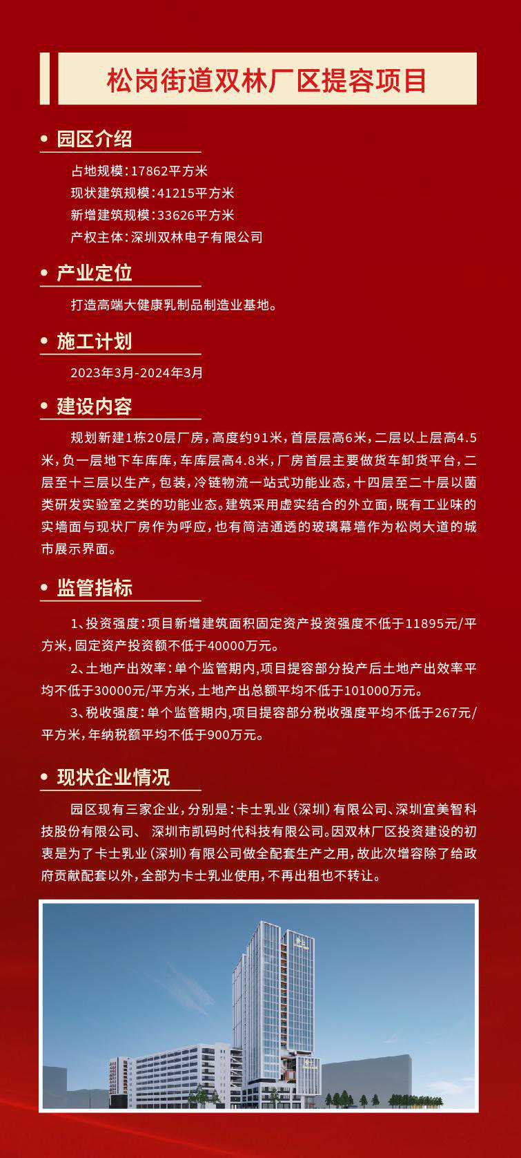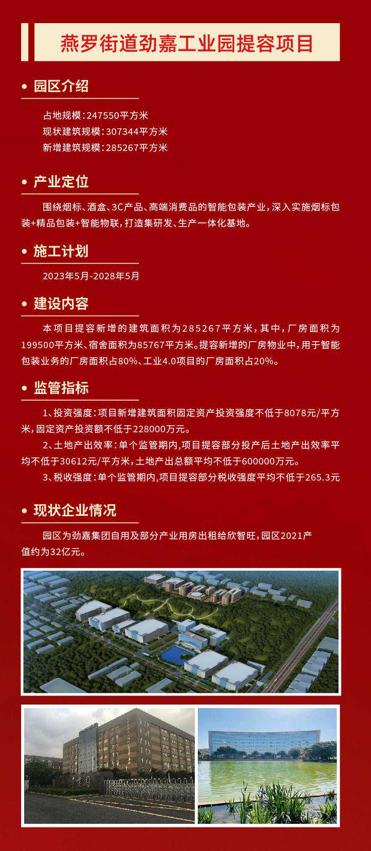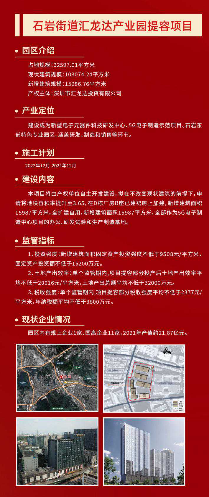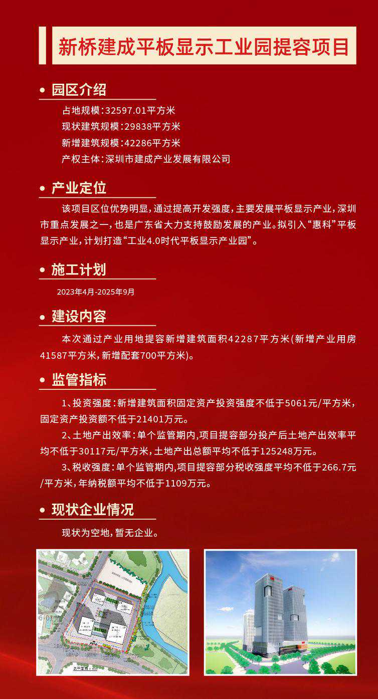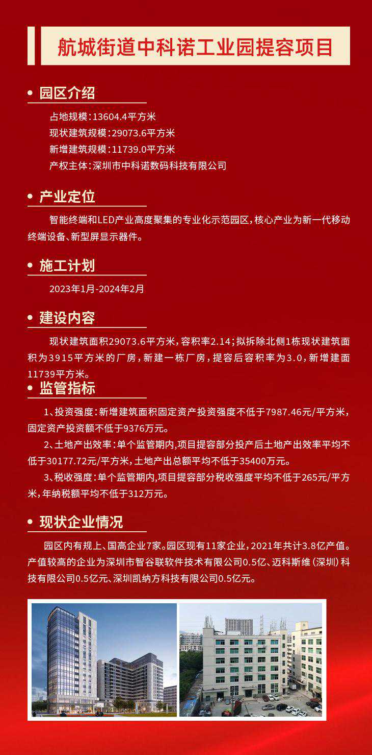 产业空间是城市经济活动的核心载体。作为深圳的产业大区,打造高质量产业空间,是宝安迈向世界级先进制造业高地的重要保障。 12月2日,润恒智慧医疗产业园开工奠基仪式在宝安区新安街道举行。项目完工后,园区将新增3.6万平米产业空间、2万平米配套宿舍,将在原产值基础上新增年产值7.2亿元、新增年纳税3000万元。 不止是润恒智慧医疗产业园,今年宝安在全区筛选了50个产业园区作为提质增效试点项目。项目完成后,可新增产业空间347万平方米,优化产业空间207万平方米,预计总投资309亿元。 宝安,正通过盘活产业空间,实现“空间等企业”,让好项目有地可落,以优质产业空间提升先进制造业发展能级。 润恒智慧医疗产业园占地约2.7万平方米,总建筑面积约3.9万平方米。园区现有10家企业,其中规上企业6家、国高企业3家,去年总产值约9.4亿元。 园区容积率只有1.4,土地使用效率不高,相关配套设施欠缺,影响了园区与企业的进一步发展。产业园区提质增效,向存量要空间,成了润恒智慧医疗产业园的必走之路。 当天的开工奠基仪式上,深圳润恒集团有限公司董事长赖汉宣透露,园区将通过提高容积率,盘活现有土地资源,利用厂区空地新建一栋产业用房和一栋配套宿舍,总投资额约5.6亿元,预计2025年5月建成投产。 “项目完工后,将新增3.6万平米产业空间、2万平米配套宿舍,将新增年产值7.2亿元、新增年纳税3000万元。”赖汉宣说道。 润恒智慧医疗产业园提容类项目的开工,正是宝安为贯彻落实深圳关于“盘活空间、提质增效、集约发展”战略部署的缩影。 当前,宝安共有产业园区2022个,数量全市第一。园区占地面积为5646.71万㎡,产业用房总建筑面积为9736.49万平方米(纳入园区内产业用房面积8464.6万㎡),位居全市第一,全区产业园区平均容积率1.50。 由此可见,宝安区产业空间体量庞大,潜力巨大。因此,为了向向存量要空间,向低效要效益,今年宝安在全区筛选了50个产业园区作为提质增效试点项目。 项目完成后,可新增产业空间347万平方米,优化产业空间207万平方米,预计总投资309亿元。其中,提容类提质增效试点项目10个,预计可新增产业空间65万平方米,预计总投资约53.05亿元。 抓产业园区提质增效的同时,宝安也抓土地整备,为产业发展腾挪空间。 据了解,宝安全年预计完成427.36公顷(市对区任务完成率187%),其中产业用地预计完成132.71公顷(市对区任务完成102%)。目前已完成297.45公顷,其中产业用地94.18公顷,产业用地整备量位居全市第一。 此外,宝安通过产业遴选挂牌出让12宗产业用地,占地约45.91公顷,建筑面积约149.28万平方米,供地数量全市第一,预计总投资359.07亿元、年产值1185.28亿元。 记者了解到,今年2月宝安印发了《宝安区产业园区提质增效工作方案》。《方案》提出未来三年,宝安将建设成“一十百千万”园区布局体系。其中,一包括一地图、一规划、一政策,十即十个示范性园区,百是百万平方米产业保障房,千指千万平方米空间增量,万为万亿级产业生态。 附:宝安十个提容项目情况