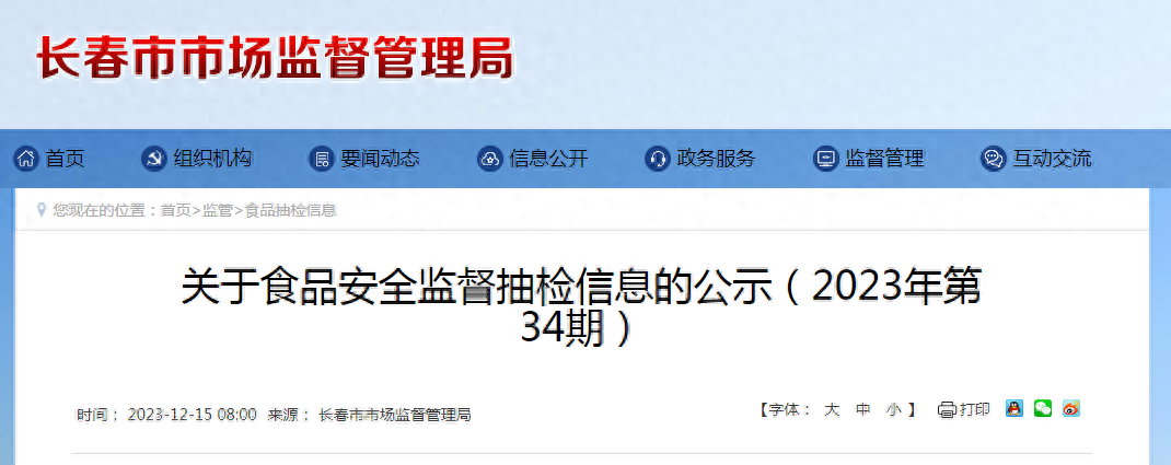 关于食品安全监督抽检信息的公示(2023年第34期)