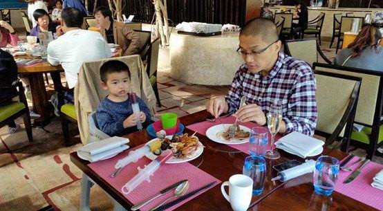 作者:iPadXIII(旅行家) 济南喜来登酒店,对于我们济南的普通人来说,是一个非常乐意去消费,但是消费水平并不低的地方。遇到诸如结婚纪念日,父母生日,或者闺密失恋,哈哈,总会想到去喜来登大吃一顿,奢侈一把。我们把这种消费称作“轻奢”,就是负担得起的品质消费。 但是最近济南喜来登酒店推出的“周末家庭日”套餐,简直不能用“轻奢”来形容了。太便宜有木有,嗷呜! 我来说说这个套餐包括什么,以下均是两个大人一个小孩的规模。 一晚商务大床房住宿,三餐:“雅”日本餐厅家庭套餐,西餐厅自助餐,酒店早餐自助;两课:游泳课程,红酒课程;一茶:下午茶饮品。还有游泳和健身房的免费使用,以及spa代金券。 这些,足够我们呆够24小时啦! 是多少钱呢?总共998! 这是什么概念呢?喜来登最便宜的房间,团购价格大概600元(不含早),自助餐厅至少180元每位,仅这两项就值回票价有没有? 由于抽中了携程酒店促销WE试住体验,所以,我和老公,两岁半的宝宝,一起去感受一下济南喜来登酒店专门为家庭设置的“周末家庭日”套餐。 这是宝宝第一次住酒店,他完全不理解住在“别人的家”是什么感觉。我们之前一直很担心宝宝会不适应在外居住,没想到,喜来登酒店给了我们一个惊喜。茶几上放着一个小人,挂着三个好像“游泳圈”一样的面包圈。小朋友一下子就被吸引啦,立刻坐在沙发上,阿呜阿呜地吃着甜甜圈。 小人旁边还放着一张欢迎卡片呢,“亲爱的韩阳,带着你的家人,去享受吧!” 立刻觉得好温馨阿。 小朋友吃完甜甜圈,这里摸摸那里看看,不停问我这是什么,对于小孩来说,这是一个全新的世界阿。 因为工作关系,我们来到喜来登酒店的时间已经临近晚上。所以,稍微参观了一下环境后,立刻前往我们的第一个餐厅,雅日本餐厅品尝美食。雅餐厅不但准备了特别的日本料理套餐,还准备了一堂小小的红酒课,当然啦,小朋友喝的是橙汁。 首先前菜是蔬菜沙拉和章鱼沙拉,看到小朋友不太能吃蔬菜沙拉,又贴心地加了一份土豆泥沙拉。为前菜准备的酒是南非的双洋清爽果香,餐厅经理为我们介绍了它地特点,与沙拉真的好搭! 主菜是照烧鸡腿饭啦,米饭是炒过的,有甜甜的菜叶在里面。鸡腿鲜嫩多汁,照烧酱甜甜的,小朋友很爱吃。上主菜的时候为我们配了另一款南非的红酒。南非作为新近发现的适合种植葡萄的地方,最近几年在新世界酒中真的好耀眼。我喝过许多南非的酒,口感都很不错。接下来是味噌汤,三个小巧的寿司(握寿司的水平还是那么好),最后是冰激凌配甜饼,经理又为我们换了一个白葡萄酒。我们三个是同样的分量,毫无疑问剩下了,有一份照烧鸡腿饭完全没有吃,经理和气地为我们打了包。 平时工作的关系,常常在喜来登吃饭,坦白说这是我在雅餐厅吃过的最简单的一餐。但是,我们吃得非常舒服,雅餐厅也维持了一贯的水准。考虑到这个活动的成本,我们认为还是非常开心的。 吃完饭出来,小朋友一头扎进儿童游乐区,搞不懂小孩子的世界阿,为什么这么喜欢这里,一玩就是两个小时。 看到时间不早,回家睡觉。第一次感受喜来登的甜梦之床。这个床是喜来登的招牌,据说,其床垫的独特设计能最大程度消除翻身对身体造成的压迫和不适,改善血液循环,让您轻松享受一夜甜蜜的睡眠。千只弹簧置成的床垫弹性极佳且触感舒适,300支纱的床单布面挺括、不缩不皱,豪华羽绒被、精选羽绒和低过敏性枕头温暖舒适……舒适、豪华的床垫,柔软、温暖的毛毯和棉被、置身于洁白的全棉被单及羽绒内芯、低敏感性枕头清新的怀抱。无论您是刚经历了疲惫的长途旅行,或是刚结束一天忙碌的工作,只要闭上眼睛,就能在喜来登甜梦之床上进入甜美的梦乡。 官方资料抄完了,现实是什么样的呢?我只能说,陷进去辽~感觉人和床完全融在一起了呀!给小朋友洗完澡,光溜溜在被子里,他也觉得舒服得不得了。老公在写字台办公,我和小孩在大大的舒服的床上,那一刻感觉好温馨啊。 和小朋友讲了几个故事,小滚滚就睡着了。我也很快就睡着了,感觉好久没有这么放松地睡觉了。就连老公什么时候爬上床的,我都不知道。 第二天早晨,我整个人自燃醒来,小朋友还没醒,老公也没醒。房间里很黑,下床掀开窗帘一点儿缝儿,才发现外面已经大亮。楼下还有大餐等着我们呐!快起床快起床! 把小朋友叫醒,七手八脚洗刷好,小朋友通过昨天的体验已经爱上刷房卡。抢着要去拿房卡,一溜烟儿就跑出去啦。 没想到早餐这么丰富,中式西式一应俱全,全到什么地步呢?牛奶有三种,脱脂的,低脂的,热的。酸奶有三种,盒装水果的,盒装原味的,还有瓶装原味的。还有火腿,包子,面条,粥,小炒,寿司,麦片,感觉哪国人来都能吃饱,完全是不用吃午餐的节奏。 给小朋友拿了一碗白粥,还有一点火腿麦片,他就阿呜阿呜吃起来。大概是在外面比较新奇,小朋友饭量很大,胃口很好呢。 我和老公则体验了更多的菜品。虽然在不停提醒自己,不要吃太多,毕竟中午还有大餐,但还是吃多了。 早餐结束后,老公爱上了房间的极速网速,回房间上网。而我决定带小孩出去逛逛。 喜来登位于奥体中心南邻,这是一块比较新的地区,省博物馆,省美术馆,还有美莲广场,雨滴广场都挺近。我带小孩去博物馆玩儿了一会儿,又和朋友在美莲广场小聚了一下,回到酒店,竟然还不到午餐时间。那么,去健身吧! 给小孩在国外买的泳衣,一直没