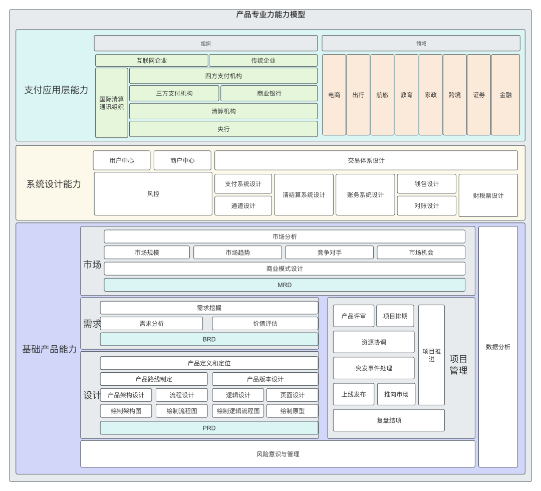 这样我们就清晰的构建了支付产品经理完整的产品专业力模型。