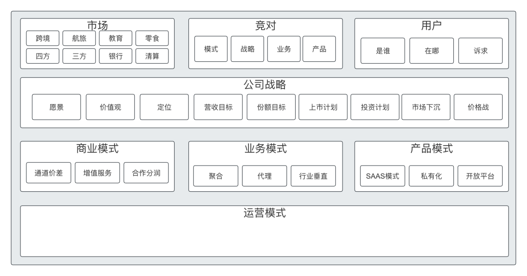 业务是产品的目标,产品是业务的基石,如果我们不清楚公司当前的业务模式、运营策略和公司战略,那么我们做的产品就缺少灵魂。