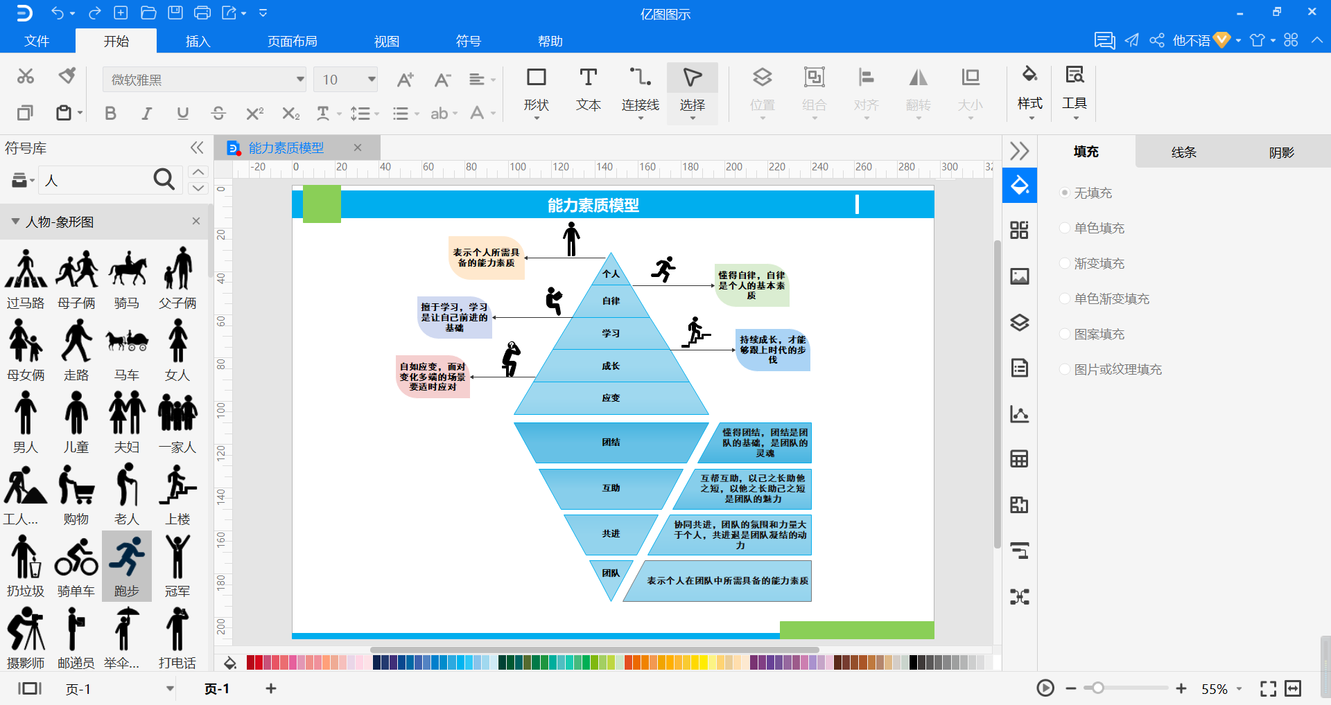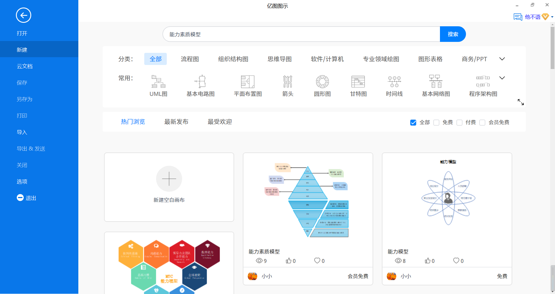 使用亿图绘制能力素质模型,直接输入关键词,搜索案例,自己在做简单的修改,就能轻松的完成能力素质模型的绘制,有效提升用户的办公效率。
