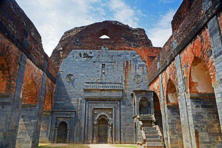 南亚是人类原生文明发源地之一,建筑风格多样且独特。稠密的人口及多元虔诚的宗教信仰,推动了南亚一系列建筑奇观的建造。8世纪后,随着伊斯兰教传播,南亚建筑日渐受到波斯影响,本土与波斯风格相互融合,成就了印度最著名的地标——泰姬陵,一些南亚波斯式建筑的规模甚至超过了伊朗和中亚的同僚。 *.以下建筑奇观根据地域分类,按照时间排序,只选取始建于1800年之前,有考古遗迹,规模比较大的奇观。 巨物恐惧:古代世界建筑奇观盘点(西地中海西欧篇) 巨物恐惧:古代世界建筑奇观盘点(东地中海西亚篇) 巨物恐惧:古代世界建筑奇观盘点(东中北欧篇) 巨物恐惧:古代世界建筑奇观盘点(波斯中亚篇) 建造年代:约公元前25世纪 摩亨佐达罗大浴场,这座城市的建筑都是由标准化的烧制砖块建造的 摩亨佐达罗大浴场 大浴场(GreatBath,Mohenjo-daro)位于信德摩亨佐达罗遗址,是印度河谷文明最著名的建筑之一。大浴场长12米,宽7米,最大深度2.4米,配有一南一北两个大楼梯作为入口。浴场墙壁涂有防水沥青,铺设了定制的烧制砖块。大浴场是文明6开局不久后就可以建造的奇观之一,大多数学者认为,大浴场可能有宗教作用,人们可以在水池中沐浴清洁,净化身体。 Dholavira阶梯井 类似的建筑,在好几座印度河谷文明遗址中都有发现。在印度古吉拉特的Dholavira遗址,人们发现了和摩亨佐达罗大浴场规模不相上下的浴场,还找到了最古老的阶梯井。Dholavira最大的阶梯井长73.4米,宽29.3米,深10米,无论面积还是容量都比摩亨佐达罗大浴场大得多。Dholavira位于卡奇沙漠边缘,建造这样的阶梯井,可储存大量用水以应对干旱,这一传统也被之后的印度人沿用下来。 建造年代:公元2—5世纪 重建后的大佛塔复原图 大佛塔地基遗址 根据考古挖掘复原的佛塔平面图 迦腻色伽大佛塔(KanishkaStupa)位于白沙瓦附近,始建于贵霜帝国时代。这里第一座佛塔可能建于迦腻色伽去世后不久,形状大概类似LoriyanTangai遗址的佛塔。4世纪时,佛塔底座重建为十字型,重建的佛塔底座宽53米,设有4道楼梯和4座角楼,算上楼梯,底座宽度大概有82米。石质基座上是木制塔身以及顶端铜制镀金塔刹。 佛塔形的圣物箱 贵霜帝国时期的铜制圣物箱 迦腻色伽大佛塔曾藏有佛陀舍利,如今这些舍利转移到了缅甸曼德勒。据说大佛塔至少被雷劈过3次,每次被雷劈后都会重建。迦腻色伽大佛塔早已被毁,其描述主要出自中国行者法显、宋云和玄奘。根据法显记载,迦腻色伽大佛塔是人世间所有塔中最高的一座,而据宋云描述,大佛塔高达170米,这将使其成为埃菲尔铁塔建成前全世界最高的建筑,现代考古学家估计,大佛塔高度大约为120米,比大金字塔矮一些。 建造年代:公元15—17世纪 拉合尔堡和巴德夏希清真寺 Alamgiri门视角鸟瞰拉合尔堡 巴德夏希清真寺和Alamgiri门间的庭院 堡垒的大象支柱,体现了阿克巴时期印度本土建筑的影响 拉合尔堡(ShahīQilā)和夏利玛花园(ShālāmārBāgh)都在旁遮普的拉合尔。拉合尔地理位置非常重要,早在11世纪,伽色尼王朝的马哈茂德就在此修建堡垒。蒙古入侵时,堡垒被毁,后来德里苏丹王朝也在此建堡垒,毁于帖木儿入侵,堡垒又一次重建,于1526年落入巴布尔之手。1575年,阿克巴决定在拉合尔建立一座坚固的砖砌堡垒,此后又陆续建造了宫殿、花园等。夏利玛花园离拉合尔堡不远,是一座波斯式花园,始建于沙贾汗时代,被誉为莫卧儿花园巅峰之作。 从入口花园远眺Alamgiri门 Alamgiri门 Naulakha亭,采用孟加拉风格弯曲屋顶造型,以大理石建造 处理政务的枢密宫 白色大理石的莫蒂清真寺 锡克帝国统治时修建的三门亭 镜宫中镶嵌玻璃镜面的墙面 镶嵌细部 画墙是拉合尔堡相对其他莫卧儿宫城的特色。但维护情况很差 印度特色彩石镶嵌 拉合尔堡是沙贾汗的出生地,颇得其青睐。堡垒建在人工土墩上,占地3万多平方米,规模不及阿格拉和德里红堡,但其宫室精美并不逊色。堡垒外有阿克巴门、Alamgiri门等入口,最有名的是奥朗则布修建的Alamgiri门,这是拉合尔最标志性的建筑之一。堡垒内部可分为行政区和后宫,有Naulakha亭、镜宫、枢密宫、黑亭、莫蒂清真寺等代表性建筑。拉合尔堡最有特色的是始建于贾汉吉尔时期的画墙,长440米,宽48米,以彩陶、彩釉砖和壁画装饰,包括116面各种主题的画板,不过保存情况很差。 花园的中轴线 花园的大理石凉亭 夏利玛花园是座波斯式天堂花园(Charbagh),天堂花园一般采用十字型布局,以水或走廊对空间进行分割,象征天地间的诗意联系。夏利玛花园是莫卧儿皇帝招待客人的场所,长658米,宽258米,花园遍布着大理石镂空装饰,有5个人造瀑布和410个喷泉,为了提供花园用水,沙贾汗还命人修建了条运河,将克什米尔山上的流水引到拉合尔。 建造年代:公元17世纪 标志性的3个大理石穹顶 巴德夏希清真寺(BadshahiMosque),意为皇家清真寺,也在拉合尔,面对着拉合尔堡。清真寺修建于莫卧儿帝国最后一位强大统治者奥朗则布统治时期。作为虔诚节俭的穆斯林,奥朗则布并没有像前几位莫卧儿皇帝那样大兴土木,这座为了纪念对马拉塔联盟战争而修建的清真寺,是奥朗则布统治时期修建的最大的建筑。清真寺始建于1671年,2年后便建成开放,直到1986年前,它都是全世界最大的清真寺。 清真寺大门,浓厚的莫卧儿风格 入口的多重拱门 巴德夏希清真寺以其精美的大理市装饰闻名 在印度清真寺中不
