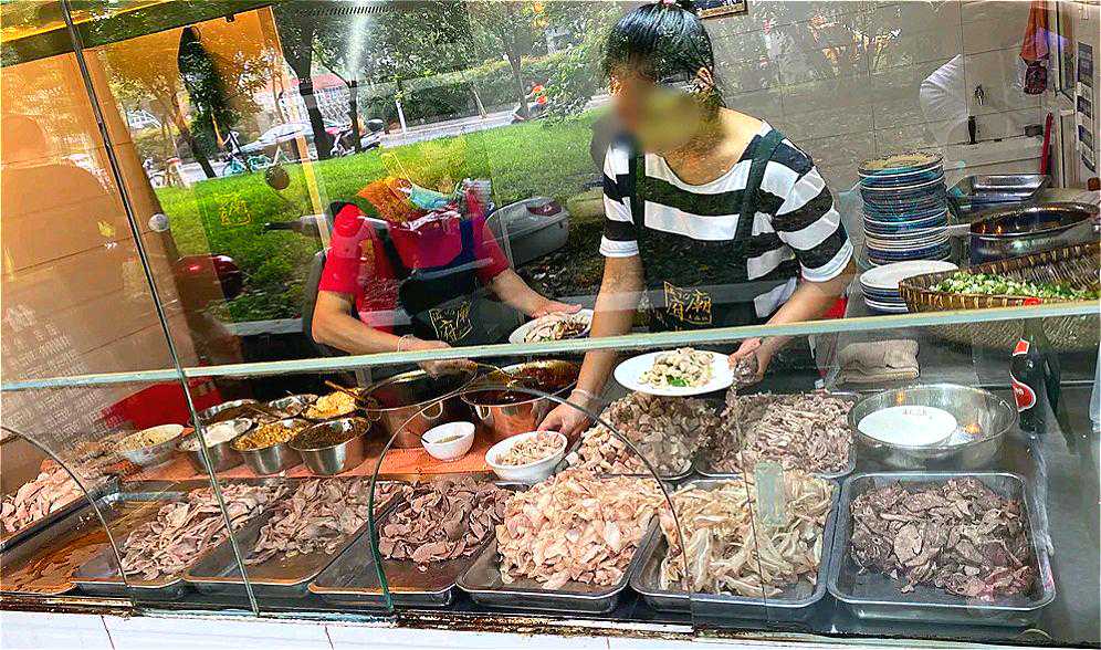 老成都著名的豆汤饭,每天生意火爆,座无虚席! 如果在成都有人问你,哪家豆汤饭最火爆?但凡他们是老饕,那么一定会提到下面这家老字号。 典型的老成都苍蝇馆子,一开就是几十年,每天一到饭点那肯定是门庭若市、座无虚席! 一大群大叔、嬢嬢些,一改往日在公交车、地铁上的“弱不禁风”,各种占座“武艺”重现江湖,一位年过半百的嬢嬢,更是左手提包、右手抱娃,从我们身边一跃而过,顺利“插”到我们身前的座位上。看得我们目瞪口呆,却也不敢半句多言,心中不禁暗自佩服。 话说在成都这个美食“江湖”中,各路武林高手云集于此,他们家的豆汤饭却“另辟蹊径”,凭借着多道颇具特色的凉菜,独步江湖! 菜品的多样性,决定了食客们的胃口,看着橱窗内琳琅满目的食材,你都会忍不住地吞清口水。 店员们忙中有序,娴熟地备菜、拌菜、端菜(这里是指端到你手上),一大群食客就围着窗口各取所需。有那么一瞬间,总觉得这是在“抢”而不是在取。 几间连排的门面显然已经不足以装下如此多的人群,露天坝子再搭个雨棚,棚下面依然是座无虚席!幸运的是我们来得早,否则不但没有位置,甚至菜品也所剩无几! 打着豆汤饭的招牌,他们家最受欢迎的却是各种特色凉拌菜,倒是真有点喧宾夺主的感觉。 之前有很多成都本地的朋友推荐,说是吃他们家凉菜必须下干饭吃,才能吃出最地道的滋味。 一碗碗冒尖的毛干饭整齐地码放在屋内,颗粒分明,打饭的伙计更是“艺高人胆大”,一只手竟然端了五碗米饭出来! 什么样的凉拌菜,竟然如此受欢迎呢?看看菜品的色泽,你就懂了! 他们家的凉拌菜,如果要有一句话来形容的话,那就是红油太香! 每一份凉拌菜端上桌,你都会被那鲜亮红润的红油所吸引,还有比这更适合下饭的凉拌菜吗?对于喜食麻辣、重油的四川人来说,这绝对是“下饭神器”! 蒜泥白肉是我个人的最爱,肉薄、重油、蒜香浓郁、重味,味道相当地道,每一块肉刚嚼完,又忍不住挑一块放到碗里,搭配着米饭一起吃,这滋味真的是太霸道了! 蒜泥白肉、凉拌肥肠、凉拌心肺、姜汁肘子、凉拌猪耳、凉拌剔骨肉,这六道最具代表性的凉拌菜,也是他们家最受欢迎的菜品,几乎是每一桌必点的! 香辣浓郁的红油,用筷子蘸一点尝尝,你就明显感受到来自舌尖的刺激感,恰到好处的胡椒粉、花椒粉,将麻味和辣味更好地融合,最后的一大勺白砂糖更是让整个口感上了一个层次! 相比较外面的凉拌菜,他们家的食材绝对是新鲜,毕竟每天那么火爆的生意,食材几乎都是供不应求的状态。 就在我们大快朵颐的时候,隔壁桌的嬢嬢些好像发生了点小冲突,起因就是好像有人插队抢先端走了一道凉拌剔骨肉,只见嬢嬢一手叉腰,一手指着对方骂街,那种老成都的“弯酸”尽显无疑。 好吧,在这样接地气的市井小馆,有点“烟火气”也算是一种深度体验吧。 不得不承认,这一次我们一行五人吃了不少的米饭,我独自就“刨”了两碗毛干饭,彻底打破了本月的减肥计划。 当然面对如此下饭的“神器”,谁又能做到“心怀不乱”呢? 据说他们家的豆汤饭已经有几十年的历史,至于真假性无从考证,但是可以肯定的是,他们家在成都美食界的影响力还是显著的,不信你随便哪一天去观察,只要是饭点,必然是座无虚席! 最后我们总算“言归正传”,这一碗豆汤饭原本才是他们家的“主角”,没想到的是竟然被凉拌菜给抢了风头。 很多顾客评价说,他们家的豆汤饭“水垮垮”的,其实豆汤饭本来就分两种,一种粘稠,本身就是用来拌饭吃的,另一种相对清淡的,就纯粹为了喝汤。 一直认为凉拌菜才是豆汤饭的“灵魂伴侣”,他们家经营了这么多年,若不是凉拌菜“撑腰”,估计也没有如今的“巅峰时刻”。 几十年的老字号,颇具特色的甜辣味凉拌菜,你能“刨”几碗干饭呢? 毛起吃”,直接获取该店的具体位置!