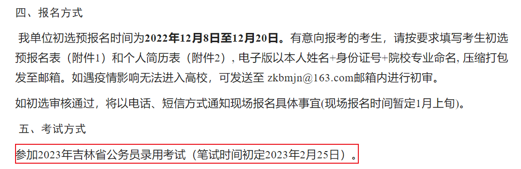 时光飞逝~2022年最后10天 同学们开始总结过去➕计划未来 新的一年,是否还有考公的计划呢? 要知道,2023省考正紧锣密鼓地筹备中 近日,小编竟收到一关于辽宁省考的网传消息 2023辽宁省公务员考试 公告发布时间:2023年1月9日 笔试初定时间:2023年2月25日 吓不吓人!刺不刺激! 要知道今天已经是12月22日 如果为真,那距公告下发仅17天 再加上,此前联考省份的省考消息 01 01.陕西省考 02 02.吉林省考 在《吉林某行政机关2023年度公务员招考通知》中明确说明:此次考试参加2023年吉林省公务员录用考试,笔试时间初定2023年2月25日。 03.内蒙古省考 内蒙古公务员考试官网发布新动态:临河区已完成2023年公务员、选调生招录用编计划申报工作;乌后旗旗委编办完成2023年公务员和选调生招录计划审核工作。 .. 2023年还没到呢,各省就开始安排省考了,并且从各省消息来看,省考联考基本确定将于2月25日进行,而公告将于1月份发布。 我大辽近几年也均参加联考,掐指一算,你的备考时间并不充裕了哦。所以~与其盲目等公告,不如利用这些时间抓紧复习备考,充实自己,你与省考定会如期相遇。