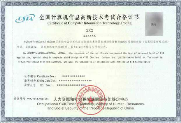 全国计算机信息高新技术考试(OSTA)是根据劳动部发[1996]19号《关于开展计算机信息高新技术培训考核工作的通知》文件,由劳动和社会保障部职业技能鉴定中心统一组织的计算机及信息技术领域新职业国家考试。 劳动部劳培司字[1997]63号文件明确指出,参加培训并考试合格者由劳动部职业技能鉴定中心统一核发《全国计算机信息高新技术考试合格证书》。"该证书作为反映计算机操作技能水平的基础性职业资格证书,在要求计算机操作能力并实行岗位准入控制的相应职业作为上岗证;在其它就业和职业评聘领域作为计算机相应操作能力的证明。通过计算机信息高新技术考试,获得操作员、高级操作员资格者,分别视同于中华人民共和国中级、高级技术等级,其使用及待遇参照国家相应规定执行;获得操作师、高级操作师资格者,参加技师、高级技师技术职务评聘时分别作为其专业技能的依据"。 劳社鉴发[2004]18号文中,又进一步明确"全国计算机信息高新技术考试作为国家职业鉴定工作和职业资格证书制度的有机组成部分"。 计算机信息高新技术考试面向各类院校学生和社会劳动者,重点测评考生掌握计算机各类实际应用技能的水平。 人社部2018年最新职业资格证书人社部权威认证证书 发证机关: 中华人民共和国人力资源和社会保障部职业技能鉴定中心 BIM应用模块考试介绍-全国计算机信息高新技术考试 全国计算机信息高新技术考试是根据劳动部发[1996]19号《关于开展计算机信息高新技术培训考核工作的通知》文件,由劳动和社会保障部职业技能鉴定中心统一组织的计算机及信息技术领域新职业国家考试。 BIM应用模块考试 BIM应用高新技术考试,是由人力资源和社会保障部全国计算机信息高新技术考试办公室组织、认证体系覆盖BIM应用个相关领域和方向,目前已在人力资源和社会保障部全国计算机信息高新技术考试办公室备案的认证模块,包括BIM应用初级、BIM应用中级、BIM应用高级。 立项指导单位: 中华人民共和国人力资源和社会保障部职业技能鉴定中心全国计算机信息高新技术考试办公室 项目统一报考组织单位、培训管理单位:项目官方工作网: 官方证书查询渠道 国家职业资格工作网查询: 全国计算机高新技术考试证书查询: 中国政府门户网站查询: BIM应用模块考试体系介绍 考试等级 初级:专项技能水平达到相当于中华人民共和国职业资格技能等级五级。 中级:专项技能水平达到相当于中华人民共和国职业资格技能等级四级。 高级:专项技能水平达到相当于中华人民共和国职业资格技能等级三级。 报考条件 BIM应用初级(具备以下条件之一者): 高等职业学院和大学本科在校学生 从事建筑或装饰相关工作1年以上者 BIM应用中级(具备以下条件之一者): 应届毕业生或获得高于大学本科学历的人员 从事建筑或装饰相关工作2年以上者 获得BIM应用技能初级证书1年以上者 BIM应用高级(具备以下条件之一者): 各类学校的教师,获得教师资格证书或者学校特聘的实训教师等; 从事建筑或装饰相关工作5年以上者 获得BIM应用技能中级证书1年以上者。 鉴定方式与鉴定时间 使用全国统一题库,按照操作要求,完成指定的考试题目;考试全部在计算机的相应操作系统和应用程序中完成,实际测试操作技能。 BIM应用初级120分钟 BIM应用中级120分钟 BIM应用高级180分钟 BIM模块培训班系列 BIM应用初级培训班40标准学时 BIM应用中级培训班60标准学时 BIM应用高级培训班80标准学时 统一培训管理与组织报考单位 建筑信息模型(BuildingInformationModeling,简称BIM),是一种应用于工程设计建造管理的数据化工具。BIM专业技术技能人员以工程信息模型为依据,将工程科学原理与信息模型结合,对工程项目的规划、设计、施工和后期的物业运营等项目全寿命周期内的相关数据进行统计、分析、预测并转化为协同信息和决策信息。国家十二五规划已明确将BIM作为重点发展领域,随着国家和地方政策的推动,极大的促进了BIM的运用和发展,无论是从未来的发展趋向还是政策引导或者是薪资待遇等等方面,BIM应用技能资格考试已经成为时下的一项热门,BIM工程师将成为继建造师之后的又一必备资质! 住房和城乡建设部2015年7月发布了《关于推进建筑信息模型应用的指导意见》(以下简称《意见》)。《意见》中强调了BIM在建筑领域应用的重要意义,同时明确提出推进BIM应用的发展目标。BIM应用型的人才在建筑行业中需求增速明显,BIM从业人员需求和薪资也是急剧增长,BIM技术工程师月薪平均为5000-8000之间,BIM专业工程师有几年的工作经验,年薪15万轻轻松松,BIM经理项目经理年薪大概15-30w,待遇增速明显!为适应先进技术发展对工程技术人才培养的需要,缓解社会对了解和掌握BIM技术的需求,培养国际化标准的BIM人才。 欢迎咨询报考!