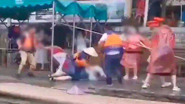 19日下午,阳朔县文化广电体育和旅游局发布通报称,涉事3名筏工因殴打他人已被行政拘留,对涉事公司相关领导进行停职处理。报道,被殴打的当事人之一小王(化名),19日向记者讲述了事发经过,称她的父亲目前仍在医院等待进一步检查。 筏工拿长度超一米五的船桨打人 小王告诉记者,7月18日16时左右,她与父亲、妹妹、朋友在遇龙河景区乘坐竹筏,被筏工告知不能在竹筏上玩水,以免打湿救生衣,“但我在途中发现其他竹筏上有游客在玩水”。筏工告诉小王,想玩水的话,“需要在船票的基础上再交50元”。 之后小王父亲和妹妹乘坐的竹筏先到达岸边,妹妹拿着水枪朝河里滋水,遭到了筏工的训斥,筏工用撑船的竹竿拍打水面,水花溅到父亲和妹妹的身上。父亲上前质问筏工,其他筏工聚集过来,双方发生了口角。 事发现场 小王告诉记者,在打斗过程中,自己脸部被扇肿,父亲目前仍在医院等待进一步检查,脸上有一道很长的伤痕,需要他人帮助才能起身。“刚做了肩膀磁共振,医生说我父亲右肩可能脱位,正在安排做肩部X光片。”对于出游遇到这样的事情,小王感到非常气愤和委屈,“我和妹妹都感到害怕,反正我是不敢来了”。 被打断的船桨 3名筏工被拘,涉事公司领导停职 7月19日下午,阳朔县文广旅局发布通报称,涉事3名筏工因殴打他人已被行政拘留并处罚款,对涉事的遇龙河公司相关领导进行停职处理,已向游客通报调查处理情况并真诚致歉。 通报全文如下: 2023年7月18日15点20分许,阳朔县遇龙河景区遇龙桥码头发生一起筏工与游客冲突事件。 事发后,阳朔县委、县政府高度重视,迅速成立工作小组进行调查处置。经调查,事件起因系游客嬉水影响竹筏靠岸引起口角,进而引发肢体冲突。冲突发生后,已于第一时间将1名游客送至医院检查,经初步诊断身体无大碍。目前,涉事3名筏工因殴打他人已被公安机关处以行政拘留十五日并处罚款:对涉事的遇龙河公司主要领导和分管领导进行停职处理;按相关制度规定对码头管理人员进行处理。我局已向相关游客通报调查处理情况并真诚致歉。 下一步,我县将举一反三,对全县旅游市场加强监管,对旅游从业人员加强教育监督,提升旅游服务质量。