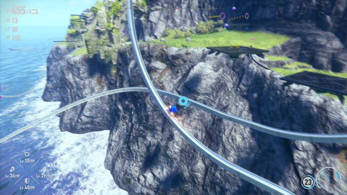 就在前两天,我利用千把字的篇幅,将自己在《索尼克:未知边境》(下文中简称“未知边境”)开篇部分看到的一切,精简成了一篇主要介绍玩法和机制的试玩报告。在文章的结尾处,我特意用一种充满希望的论调,表达了自己对“索尼克”新作在传统玩法基础上进行大刀阔斧改革的赞同——毕竟,想要在接下来的时代生存下去,有些东西必须做出改变,即便这个过程本身就充满了让人不安的未知性。 事实上,就算是在通关了游戏之后,这种想法也没有发生改变。但在一些关系到切身感受的事情上,“未知边境”的确让我纠结万分。因此,我决定在这里将一切东西都掰开,将它的优点和缺点以一种更加直白的形式表述出来,好帮助自己对其进行更加客观的认知。 我知道你可能已经听腻了这些,但想要理解“未知边境”,有一些事情是我们注定绕不开的:那就是“索尼克”系列在近十年来所处的尴尬境地。这既关系到世嘉为何如此重视“未知边境”,又关系到索尼克团队在起草一部具有颠覆性意义作品时所面临的困难——更为关键的是,这还关系到了索尼克与其他动作游戏之间的边界在哪里。 用一句话来概括,那就是对于当下主流市场而言,传统的索尼克游戏太“难”了。倒不是说主流玩家在操作上跟不上游戏难度,只是在有着更多选择和更快的生活节奏下,很难有人还愿意将自己的大把时间,一遍又一遍地花在刷图和背板上。放在今天,这套东西反而更像是独立游戏钟爱的领域,更何况人家还不需要担心自己有像索尼克一样沉重的“明星架子”。 从这方面来说,“未知边境”所被寄予的,便是为蓝色刺猬“改善印象”的重任。 不过需要承认的是,在第一印象上,它给人的观感实在算不上好。就和你此前在那支预告片中看到的一样,“未知边境”的故事舞台被安置在一片被统称为“星坠群岛”的全新地点下,其实际场景是五个概念上相邻却并未实际连接的“开放区域”。 或许是受到了真人版电影的影响,“星坠群岛”采用了更加偏向写实的视觉与环境风格,随着游戏中时间迁移,玩家也可以在岛上看到像是昼夜交替、暴雨、迷雾、流星雨等丰富的气候变化,广阔开放的场景也让这五座岛屿在最大程度上,满足着索尼克粉丝们尽情自由奔跑的终极愿望——除开那些浮在空中的平台、加速带、滑轨和弹簧。对“未知边境”来说,这是一个注定无法绕开的问题。 从广义角度上来看,索尼克团队想要打造的世界,更像是一个绝对依附于索尼克核心玩法,也就是高速奔跑的“主题游乐园”——老粉丝们能够感觉到自己被重视了,新玩家也能知道你品牌的卖点在哪儿。 就结果而言,“未知边境”用一种不怎么精致的方法,实现了大部分目标——那些充满不协调感的岛屿环境,就可以被看作是两者权衡取其重后的无奈之举。但不管看上去有多么别扭,我也可以保证,当蓝色刺猬在画面中心跑过,留下一道夹杂着闪电特效的蓝色轨迹时,你立即就能理解这种低成本且无障碍的高速移动,究竟能带来什么样的独特快感。 为了让玩家对索尼克的速度有更清楚的认识,“未知边境”还特地搞了一套聊胜于无的成长机制。随着游戏进程的深入,玩家可以对防御、攻击、金环持有量与奔跑速度的上限进行提升,当你意识到周围风景越发模糊的时候,也就表示着你的速度变得更快了。至于那些破坏了整体氛围的加速带或滑轨呢,也确实在自由的奔跑过程中起到了连接场景、辅助玩家将奔跑过程变得更顺滑的作用,加上复杂交错的空中平台,场景的层次感也获得了不少提升。 “索尼克游乐园”的框架成立之后,“未知边境”还需要给玩家一个动机:为什么我们要在地图上跑来跑去?除了自由奔跑带来的独特快感之外,开放区域的意义又在哪里? 在剧情上,这是因为艾咪、纳库鲁斯与塔尔斯的身体,都被困在了星坠群岛的另一个位面中。想要拯救同伴,索尼克就必须集齐七颗混沌翡翠,击败盘踞在岛屿上的强大守护神,解放各个岛屿。而具体到游戏流程上,玩家又需要先从设置在岛屿各处的谜题机关收集打开“传送门”的齿轮,再从遵循关卡式构架的“传送门”中获取解锁混沌水晶的钥匙……说白了,“未知边境”其实就是一款建立在多层“套娃”关系下,以“在固定区域中探索”为目的,再用剧情驱使玩家重复这个过程的游戏。 有意思的是,“五座岛屿”的设计意义,其实正在这里。为了不让玩家在中途对于这种循环模式感到厌烦,“未知边境”中的前三座岛屿分别有着不同的地貌、不同的敌人,以及不同的关卡设计模式。比如,其中担任了教程职责的克洛诺斯岛,就以葱郁优美的自然风光和简单直白的平原地形构成,玩家在岛上的行动几乎不受到任何的限制。 相比之下,以沙漠、绿洲与山谷作为主题的阿瑞斯岛,则使用了一种更加保守的设计思路。在刚刚来到这座岛屿时,玩家能够自由探索的只有大约三分之一的内容,只有当剧情推动到一定程度之后,通往岛屿深处的道路才会打开,也因为地形上加入了大量无法直接穿越的岩壁和山谷,索尼克的移动自由度大大降低,依赖于滑轨或弹簧等人工机关进行的移动变得更加重要。而到了第三座岛上,“未知边境”更是在原本开放式的地图上加入了大量半强制的横版关卡,使得玩家的探索自由度进一步受到限制。 第三座岛屿上的大部分被云海所隔断,只能通过滑轨通