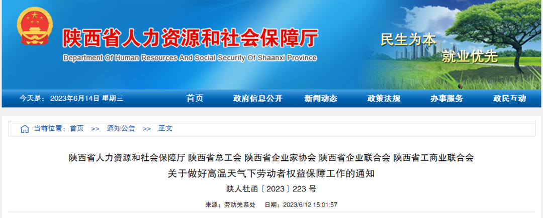 《关于做好高温天气下劳动者权益保障工作的通知》